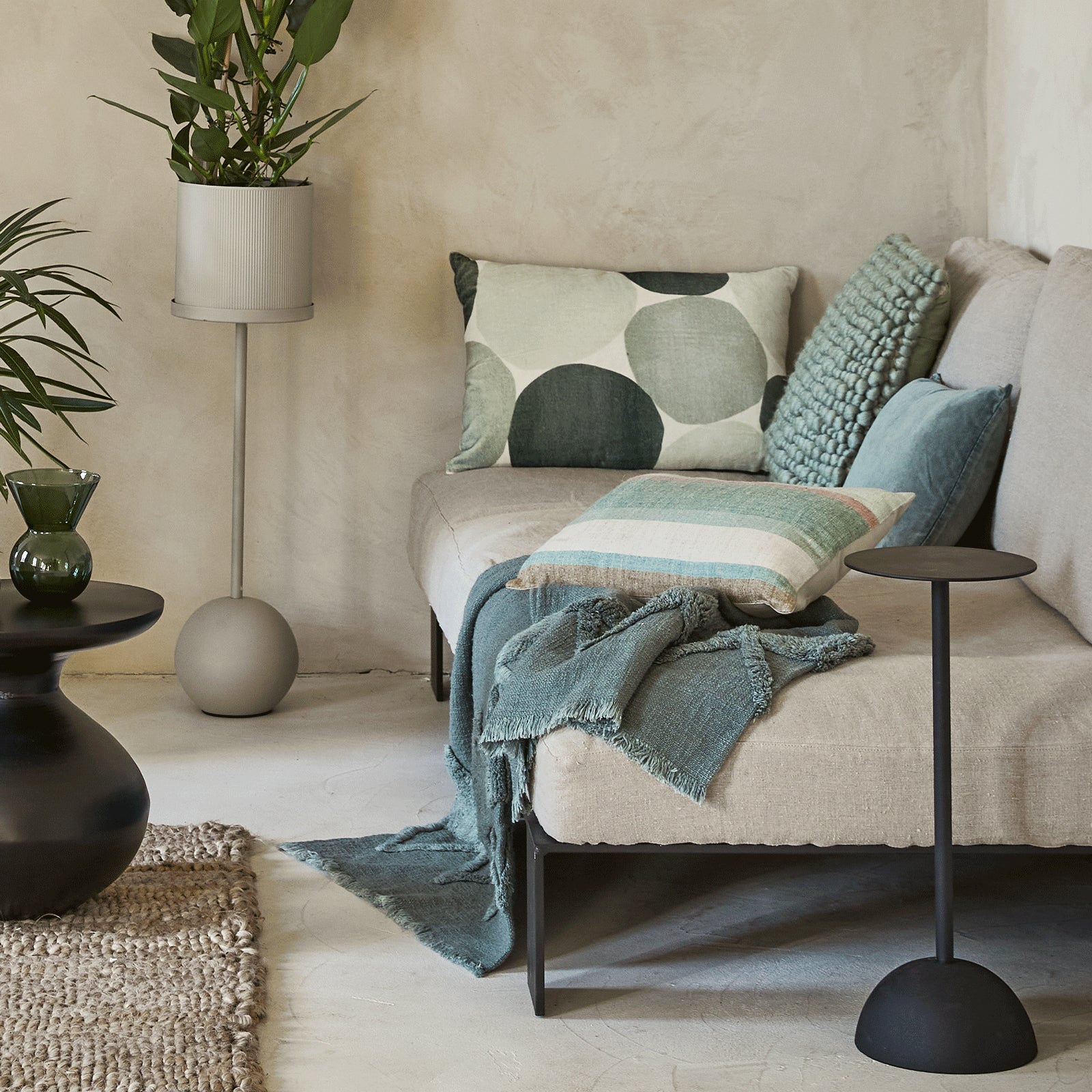 Elegantie, ingetogen luxe en minimalisme komen samen in het sterke design van Urban Nature Culture’s side table, met de hand gemaakt in India. Deze diepzwarte bijzettafel is van aluminium en brengt dunne lijnen en ronde sensuele vormen samen. Het frame heeft een korrelige finish, maar de top is glad. Deze tafel matcht makkelijk met andere items in je interieur – waar je deze beauty ook neerzet.