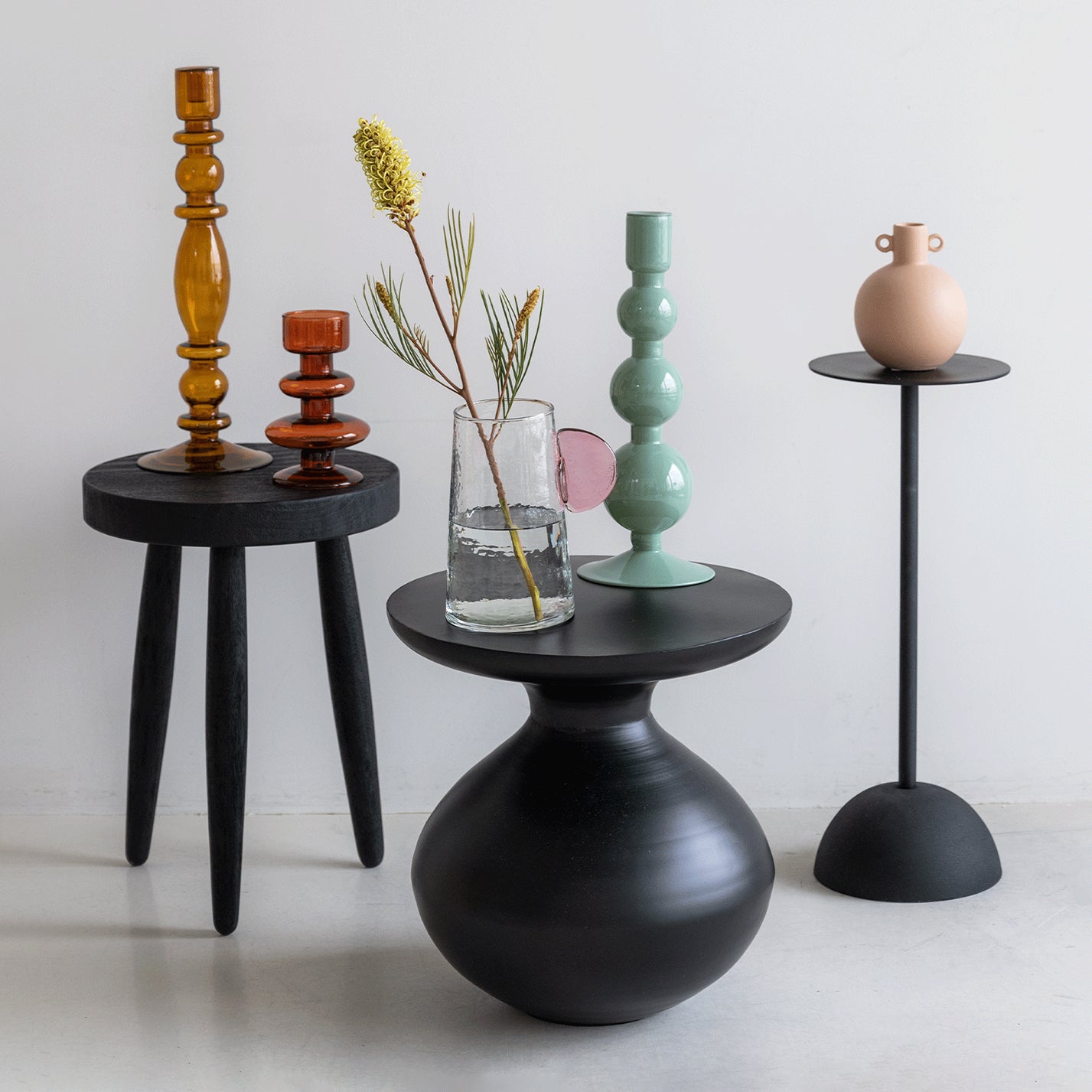 Urban Nature Culture’s matzwarte, ijzeren side table Tummy danst rond met vrouwelijke, sensuele vormen. Staat prachtig als nachtkastje, maar ook naast je favoriete stoel om met een dikke bestseller in te verdwijnen – Tummy vergezelt je graag tijdens stiekeme vluchtpogingen uit het drukke, dagelijkse leven.