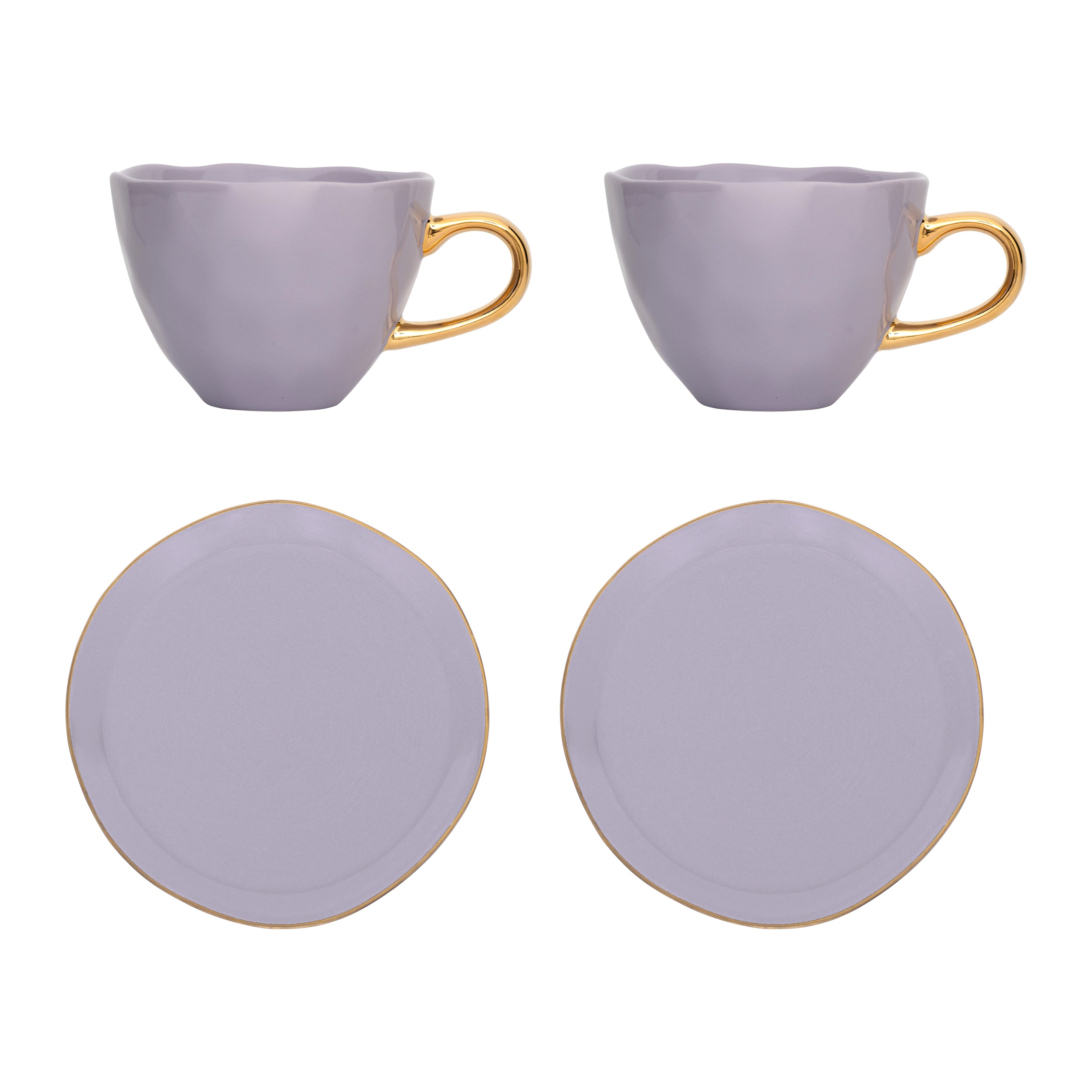 Urban Nature Culture Good Morning Kop Cappuccino/Thee en Bord Lila - Set van 4 - In Geschenkverpakking