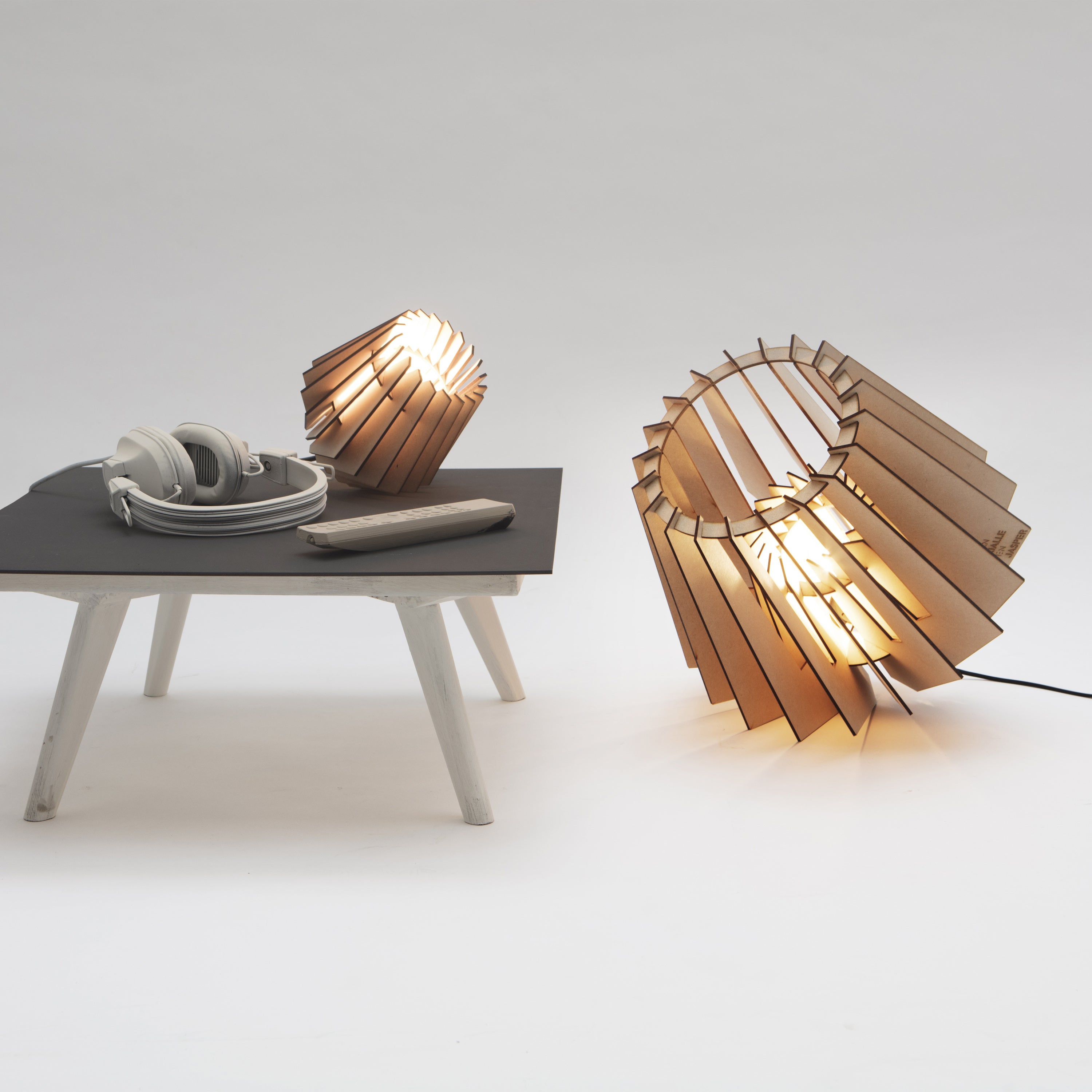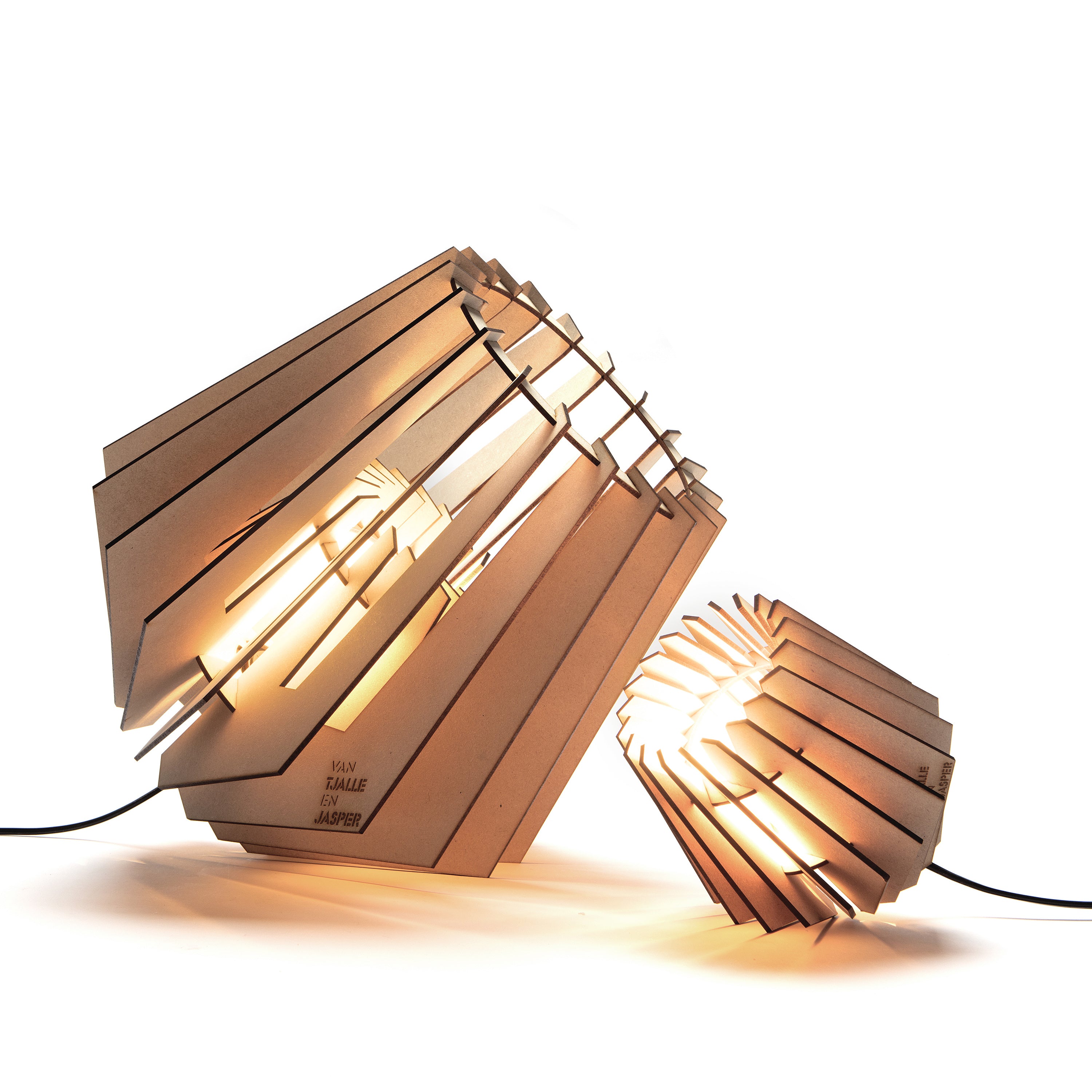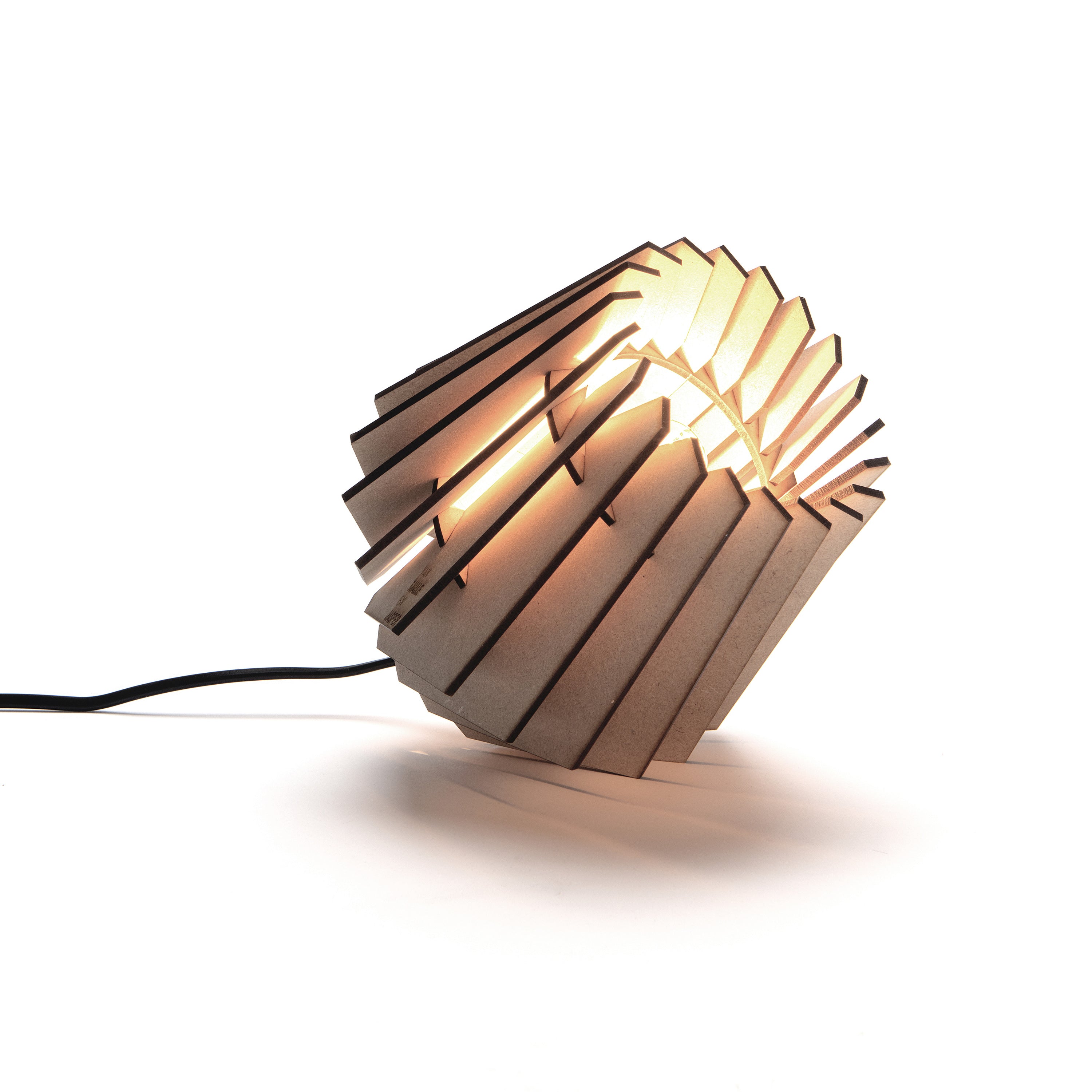 Gesneden met een laser De lamp is gemaakt van onbehandeld MDF. De stoere, donkere randen heeft de lamp te danken aan de manier van snijden. De onderdelen van de lamp worden namelijk door middel van een laser uit een stuk MDF hout gesneden. Gaaf hè?