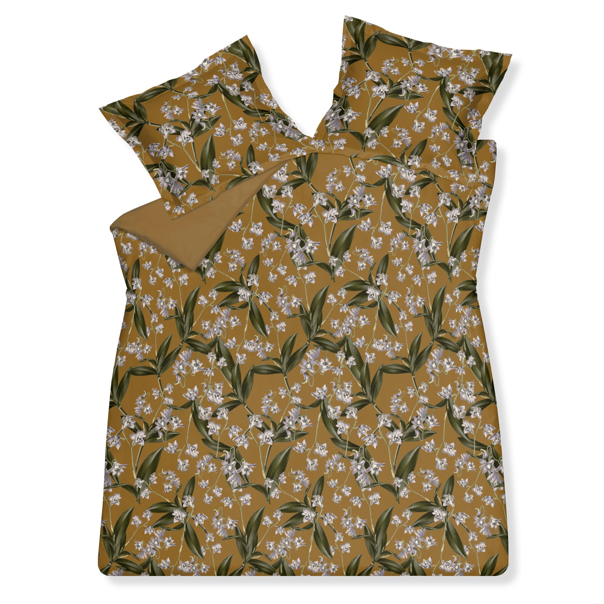 Het Vandyck dekbedovertrek Floating Twigs (SAM120202) is een satijnkatoenen dekbedhoes met een print van donkergroene bladeren en zachtpaarse bloemen. De achterzijde is uni gekleurd. Maat 240 x 200/220 cm (lits-jumeaux dekbedovertrek met 2 kussenslopen) Kleur Sandy Gold-117 Kwaliteit 100% satijnkatoen Kussensloop voorzien van Oxford rand Kleur/print Bovenzijde: Overtrek kleur Sandy Gold-117 met een print van bladeren en bloemen Onderzijde: Uni kleur Sandy Gold-117 Instopstrook Ja (ruime flessenhals) Wasvoorschriften Machinewasbaar op 40 graden (donkere kleuren) of 60 graden (lichte kleuren) Drogen op lage temperatuur Heet strijken