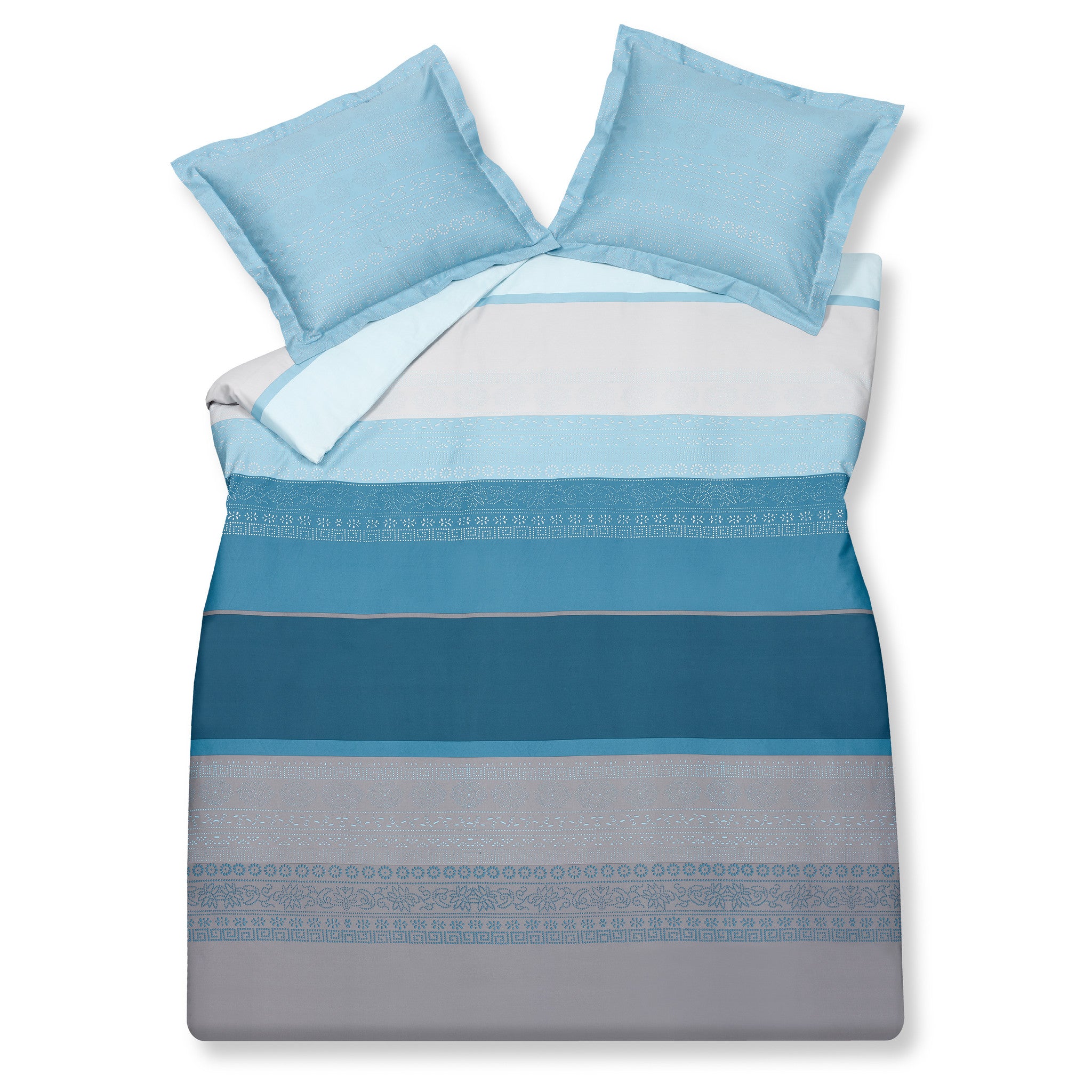 Het Vandyck dekbedovertrek FUNKY (SABB19102) heeft een speels, grafisch patroon in brede strepen. Een variatie van blauwe kleuren wordt stijlvol gecombineerd met grijs. Maat 200 x 200/220 cm (2-persoons dekbedovertrek met 2 kussenslopen) Kwaliteit 100% satijnkatoen Kussensloop voorzien van Oxford rand Kleur/print Bovenzijde: Brede strepen in een speels, grafisch patroon van blauwe kleuren en grijs. Onderzijde: Brede strepen in een speels, grafisch patroon van blauwe kleuren en grijs.