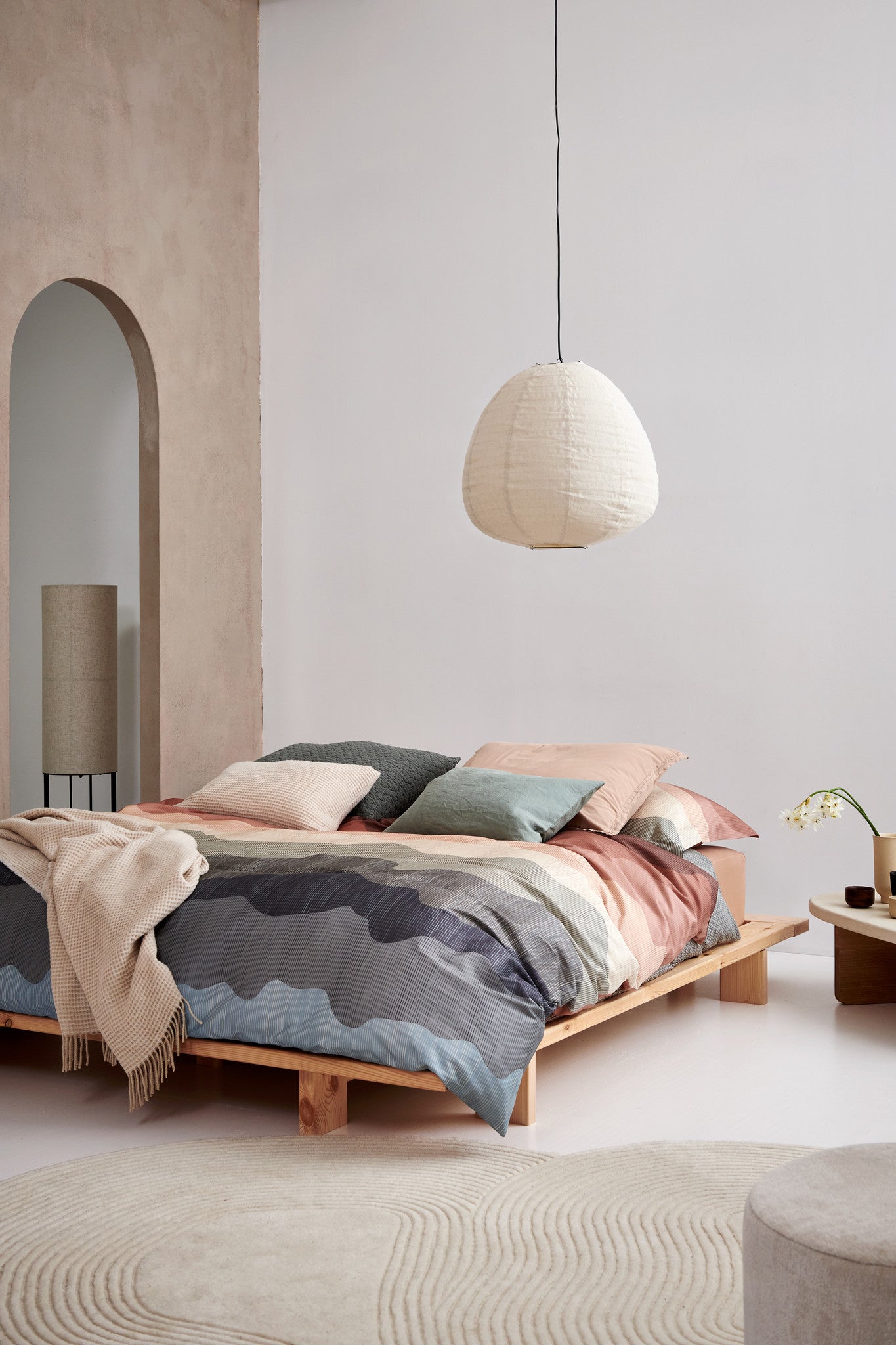 Ontdek de speelse weergave van een bergketen in deze dekbedhoes. Bij elke kleur is het landschap een beetje aangepast voor een verrassend effect. De vloeiende lijnen en organische vormen passen helemaal bij de woontrends van nu. De achterzijde is uni van kleur. Maat 140 x 200/220 cm (1-persoons dekbedovertrek met 1 kussensloop) Kleur Multicolor-000 Kwaliteit 100% satijnkatoen Kussensloop voorzien van Oxford rand Print Bovenzijde: Print Landscape Onderzijde: Uni gekleurd Instopstrook Ja (ruime flessenhals) Wasvoorschriften Machine wasbaar op 40 graden (donkere kleuren) of 60 graden (lichte kleuren) Drogen op lage temperatuur Heet strijken