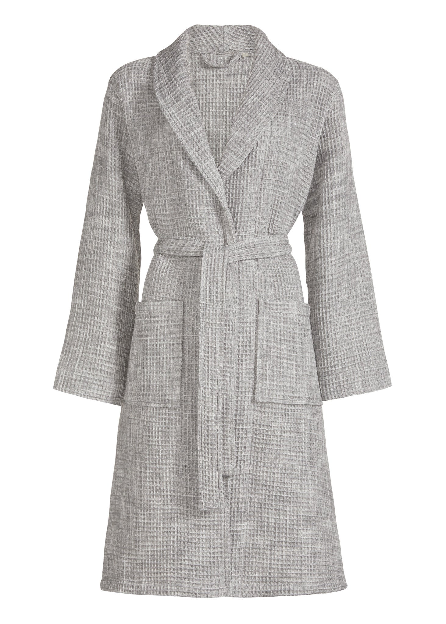 De Portland badjas heeft een elegant model met sjaalkraag, diepe zakken en ceintuur. Gemaakt van de beste kwaliteit organisch katoen, met een unieke, gemêleerde look door het space dying proces. Deze lichte, luchtige badjas is al voorgewassen waardoor het wafelpatroon levendig en krimpvrij is.