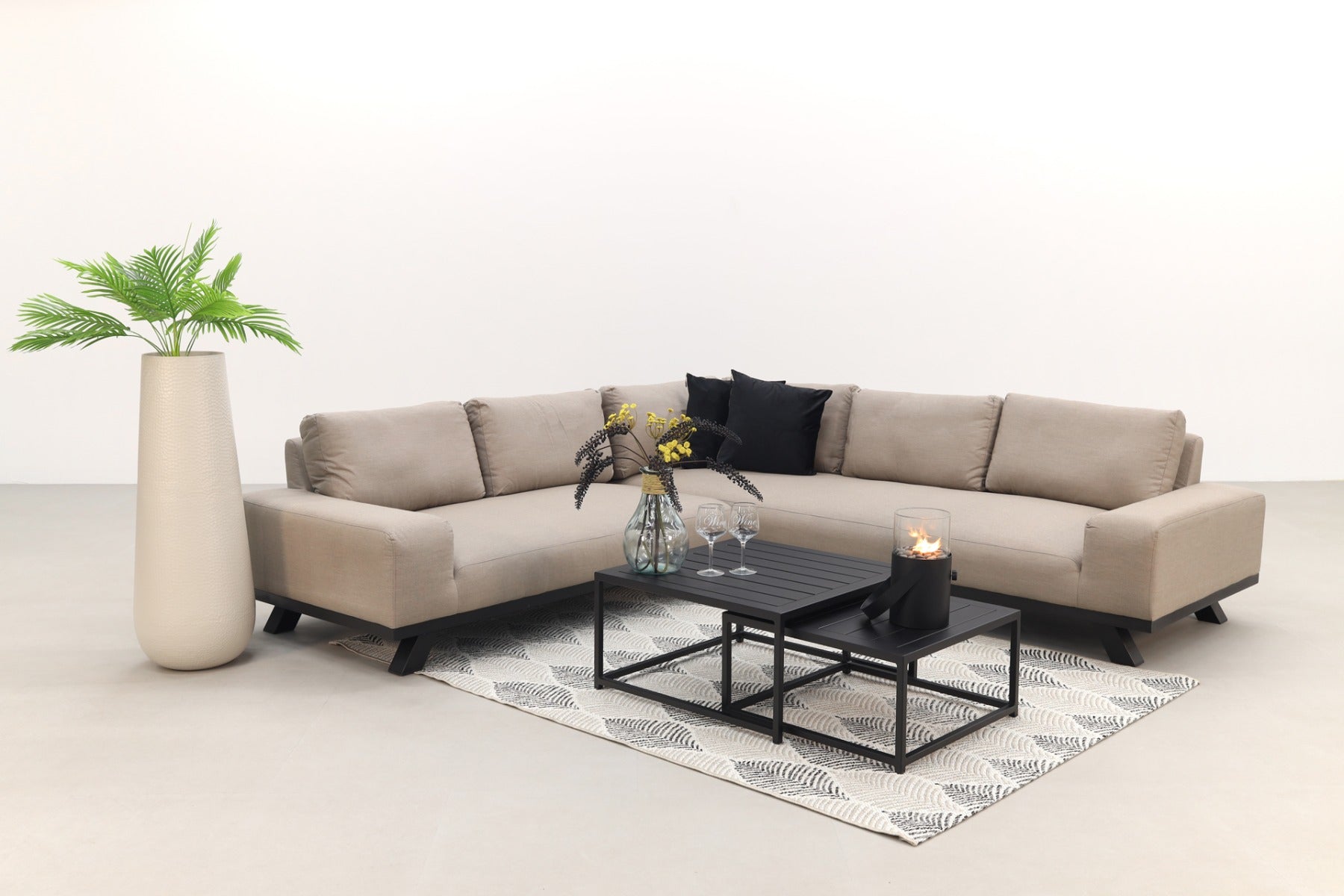 Heerlijk loungen en niet hoeven nadenken of de kussens naar binnen moeten wanneer er een bui aankomt. De Barcelona heeft Sunbrella stof en mogen nat worden.