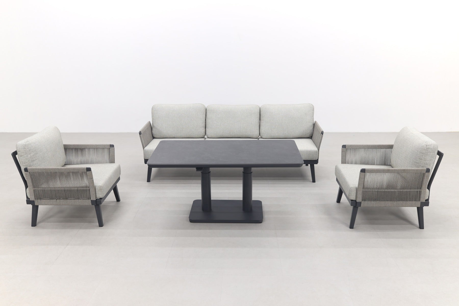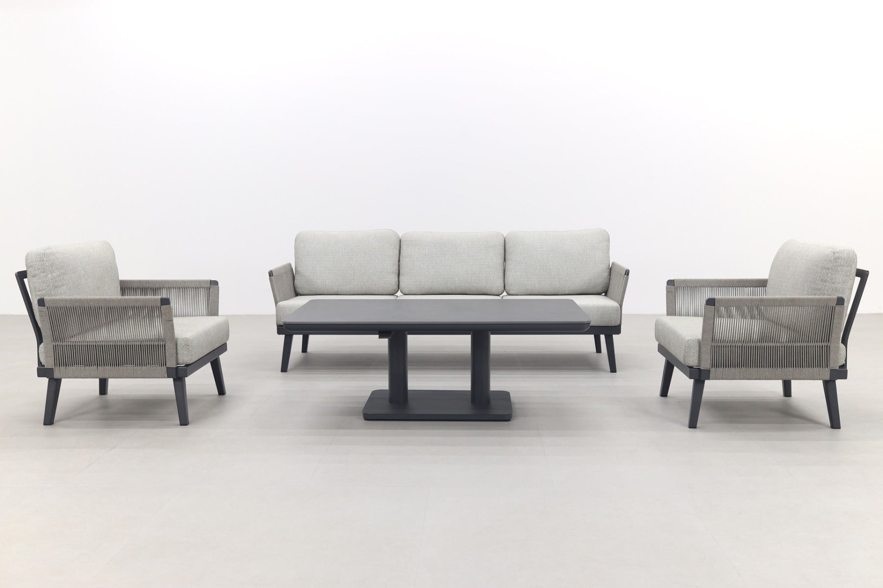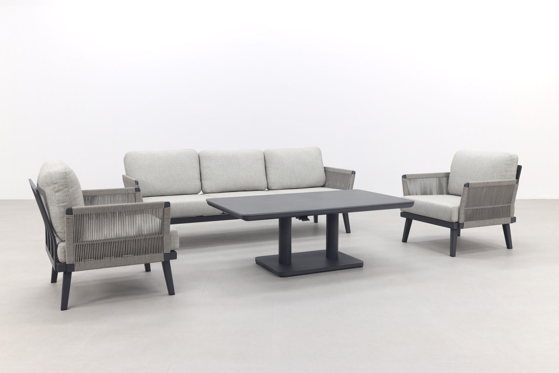 2x Durban loungestoel 1x Durban 3-zits loungebank 1x Medina up&down tafel royal grey