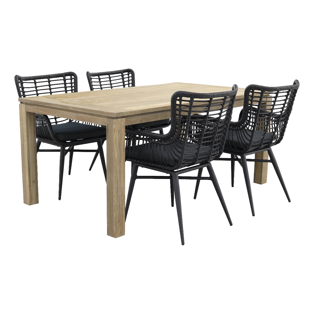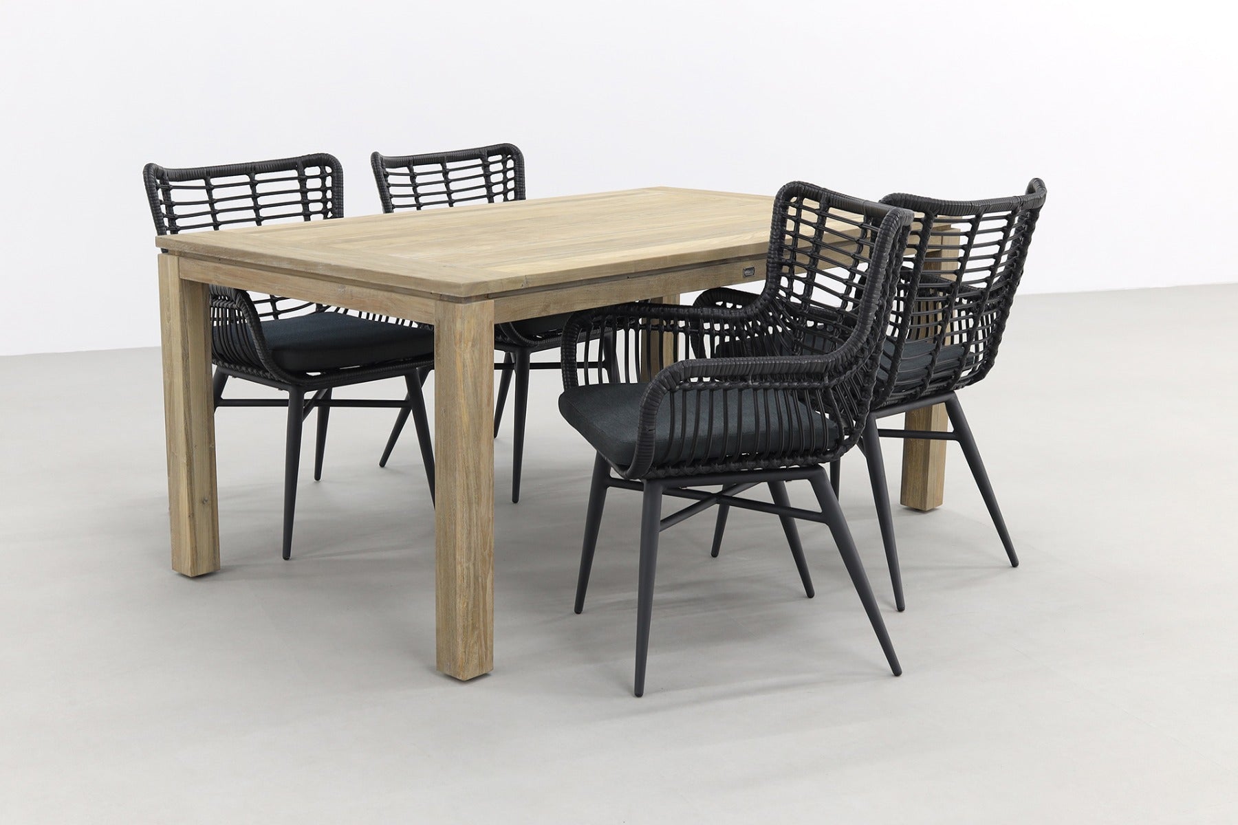 4x Jasmine dining tuinstoel - Black 1x Rome tuintafel 170x100 cm. - Grey wash