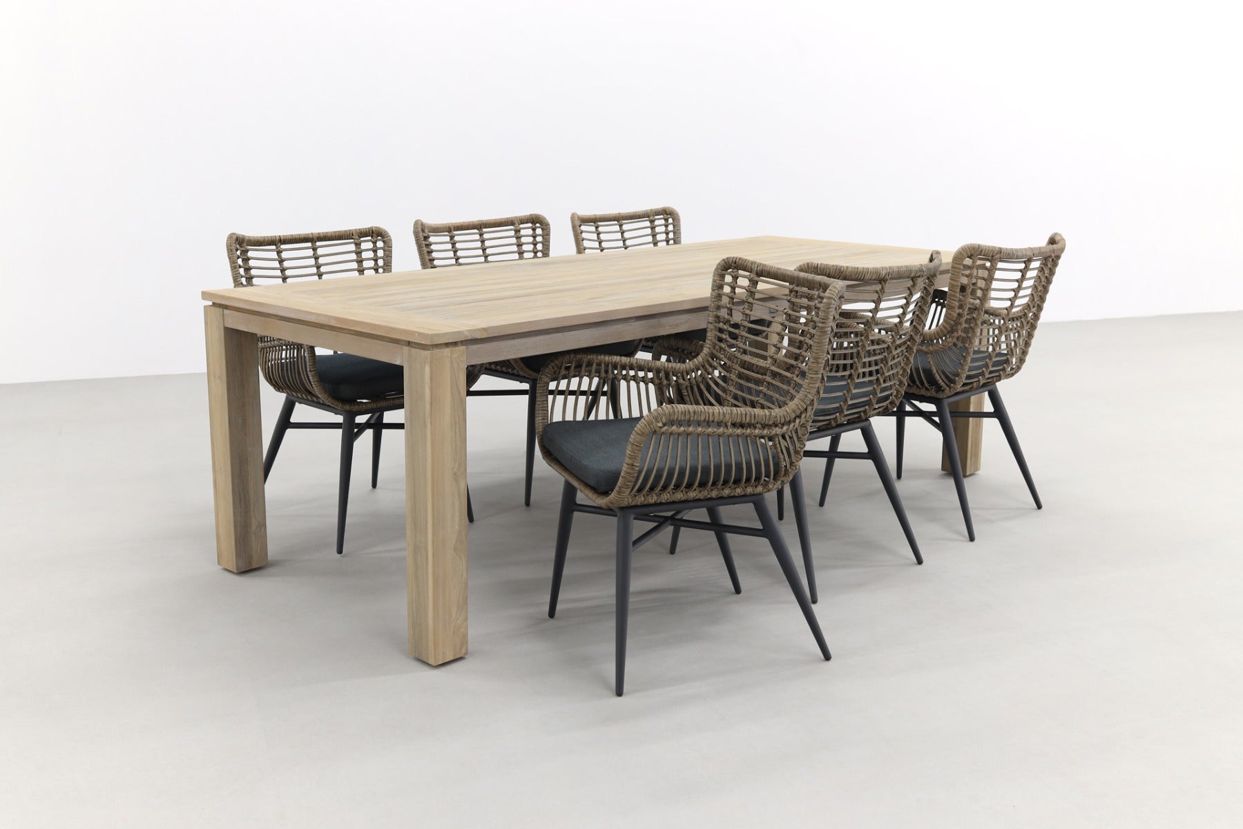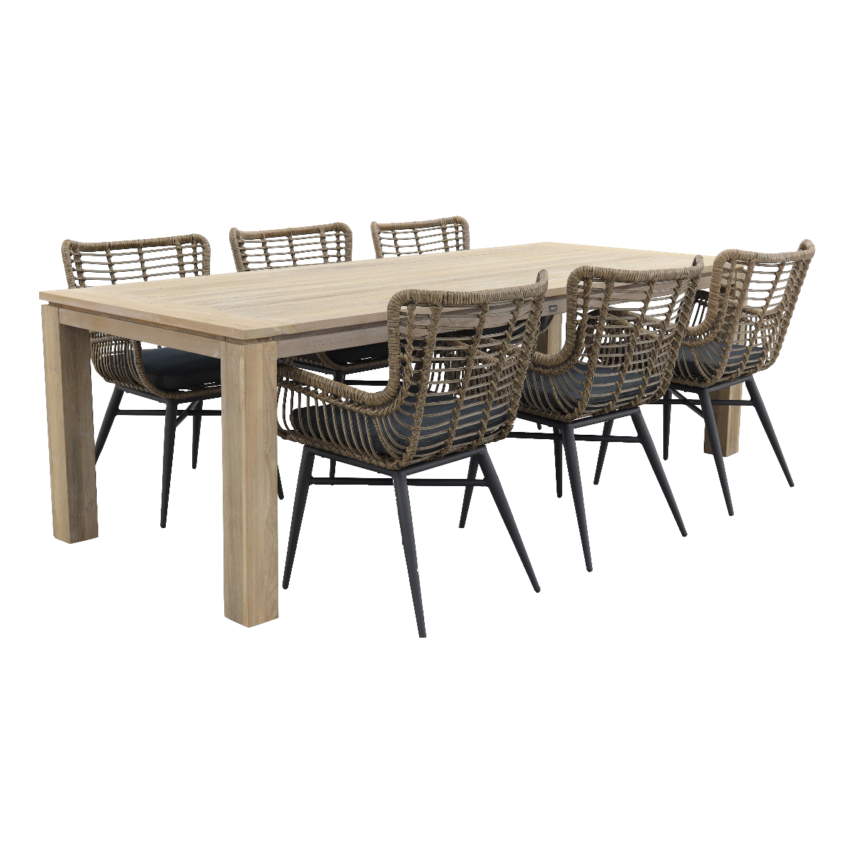 6x Jasmine dining tuinstoel - Natural 1x Rome tuintafel 240x100 cm. - Grey wash