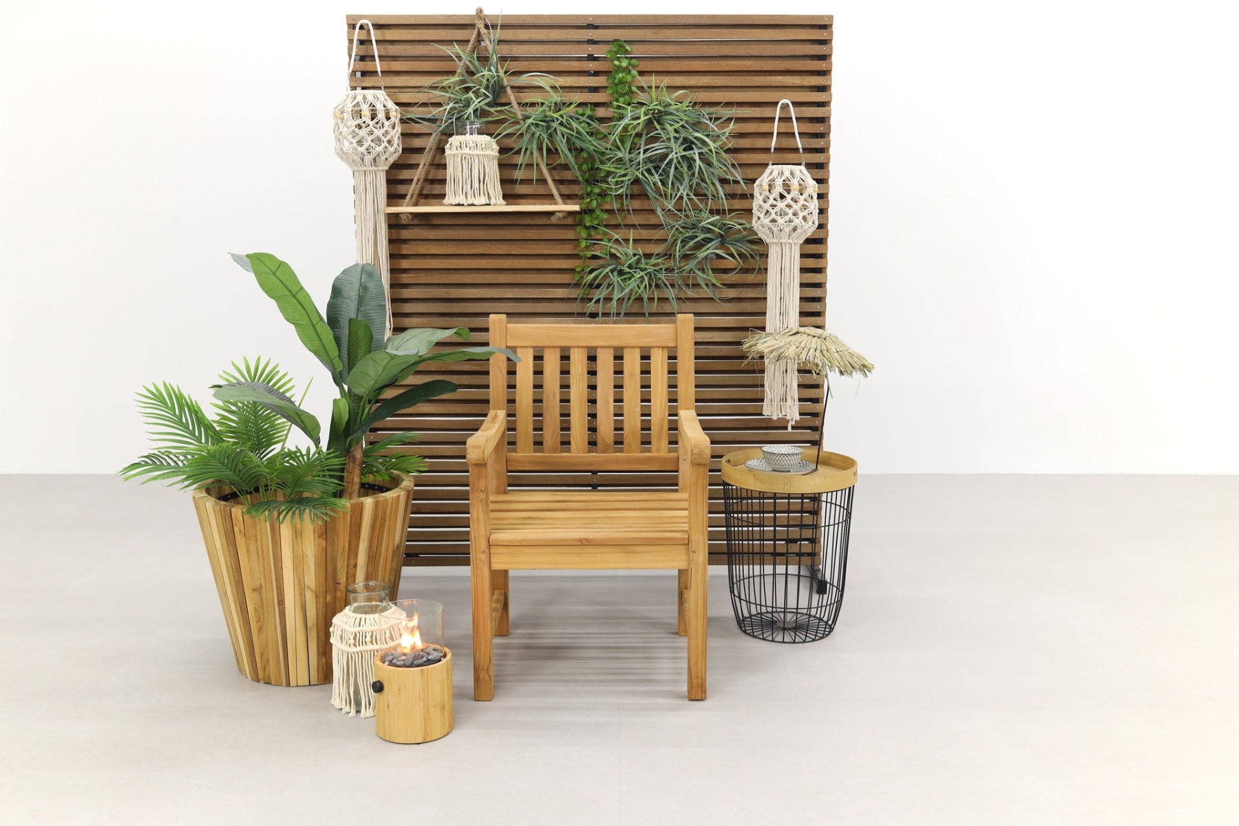 De Patrick tuinstoel is vervaardigd uit hoogwaardig teakhout, een buitengewoon robuuste houtsoort die bestand is tegen alle weersomstandigheden in Nederland. Dit hardhout staat bekend om zijn uitmuntende sterkte en duurzaamheid, waardoor de stoel jarenlang meegaat zonder noemenswaardige slijtage. Bovendien is teakhout bijna vrij van werking en zal het niet splinteren, wat zorgt voor een veilige en comfortabele zitervaring. Het natuurlijke karakter van teakhout kan echter leiden tot kleine barstjes en haarscheurtjes, een volkomen natuurlijk proces dat geen enkele invloed heeft op de kwaliteit van deze tuinstoel. Om het prachtige vergrijzingsproces te bevorderen, raden we aan de stoel te behandelen met onze speciale Teak Protector. Zo geniet je nog langer van de tijdloze schoonheid van de Patrick tuinstoel.