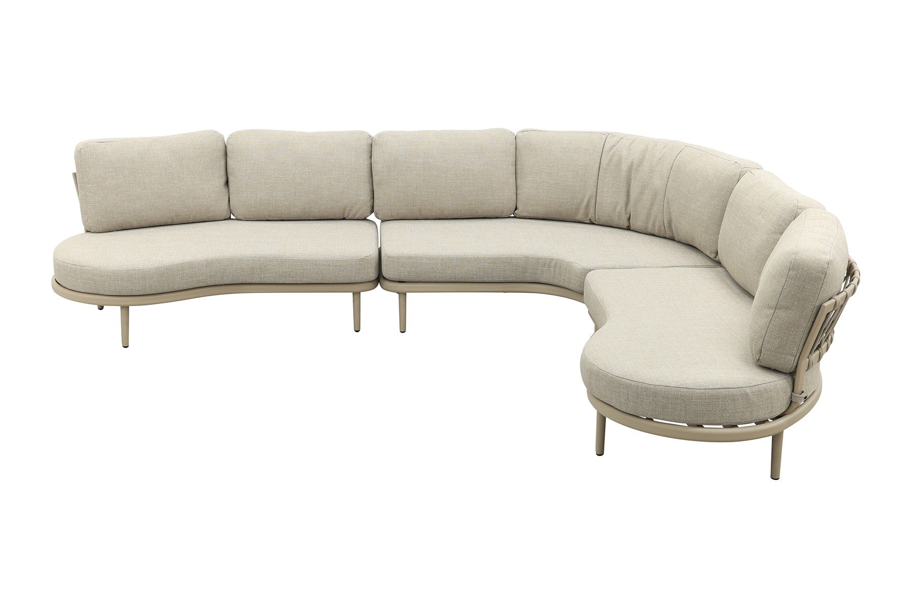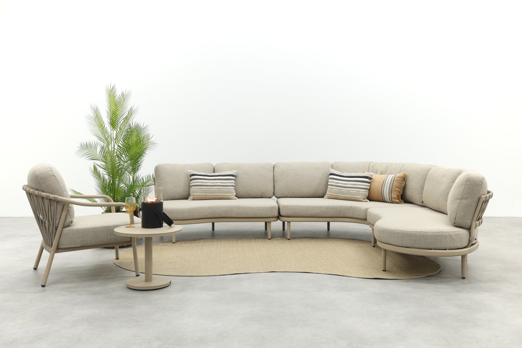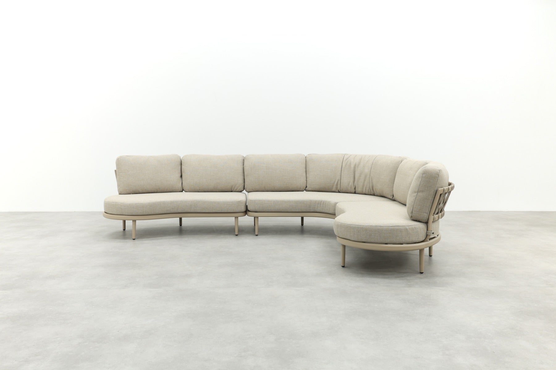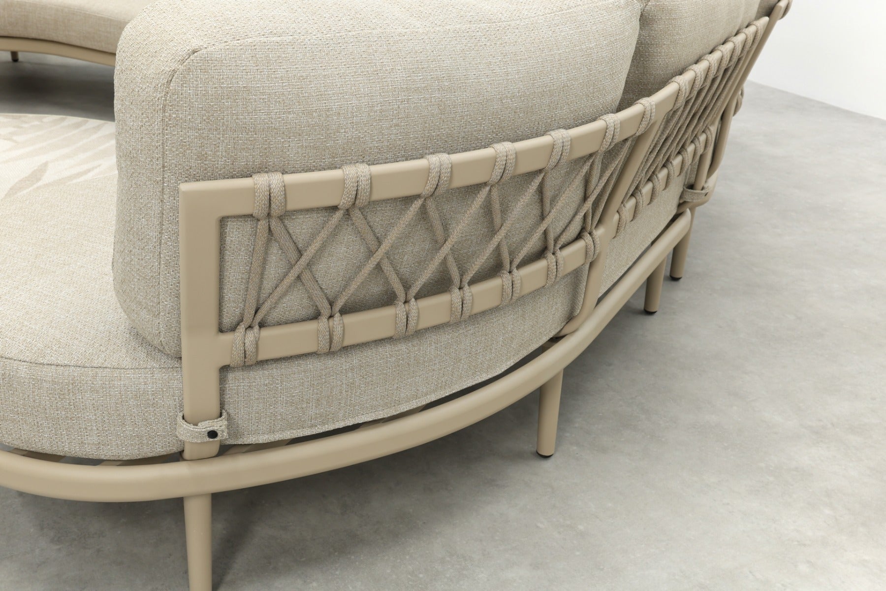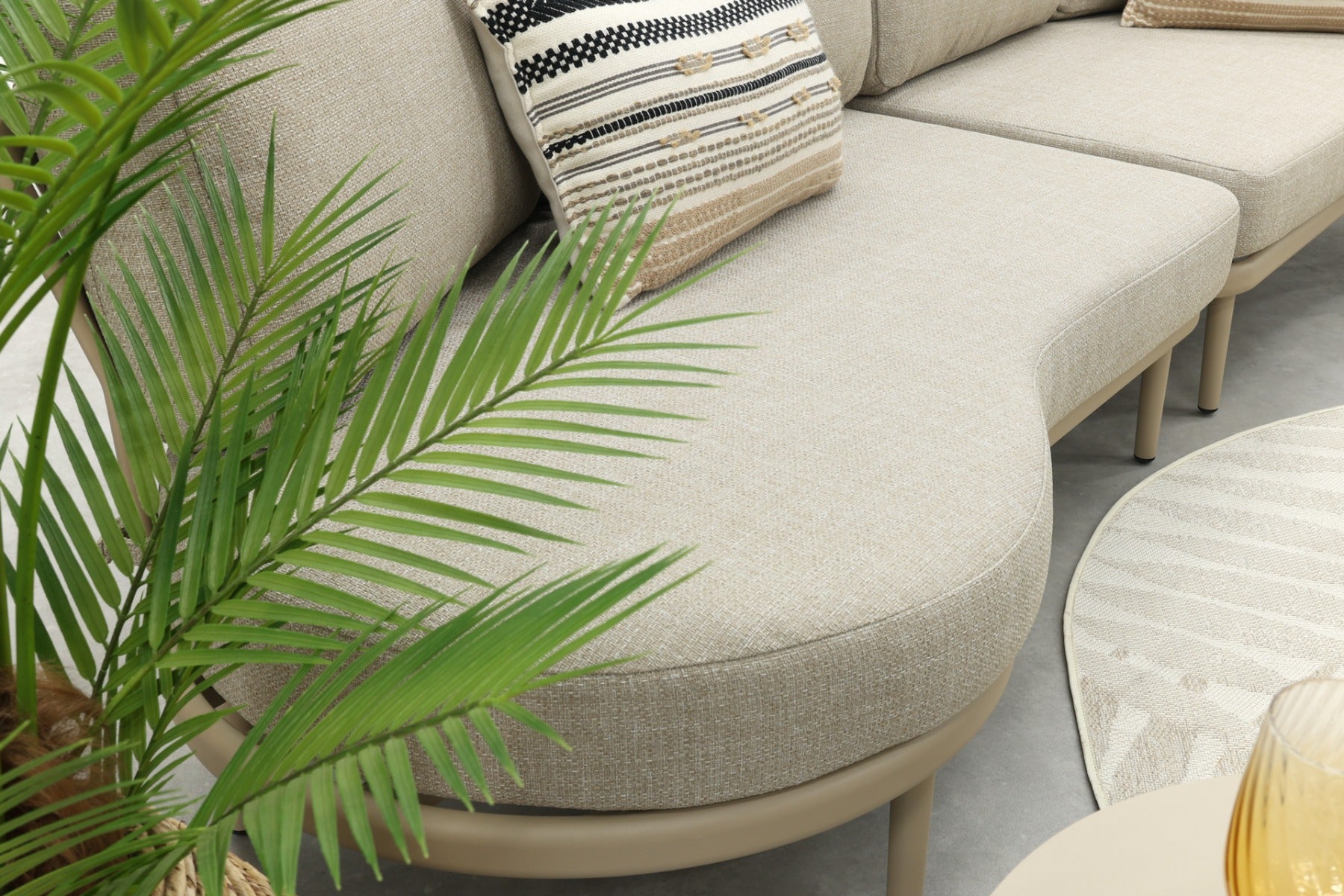Op zoek naar een loungeset die nét even anders is? De Saranda organische loungebank valt op door haar ronde vormen en zachte latte-tint, helemaal in lijn met de nieuwste tuintrends. De open, vriendelijke uitstraling past perfect bij een gezellige tuinsetting, of je nu met het gezin ontspant of regelmatig gasten ontvangt. De rugleuning met rope vlechtwerk geeft een speels en luxe accent, terwijl de ‘dusk woven’ kussens zorgen voor comfort én een rustige uitstraling. Shop eenvoudig online!