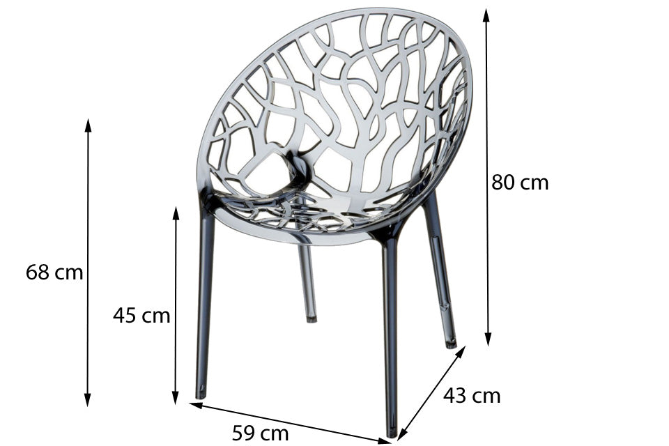 Prachtige designstoel met een unieke uitstraling. De Siesta Crystal stoel is een echte eye-catcher voor zowel binnen als buiten. De moderne designstoel heeft een brede en comfortabele kuip en is gemaakt van hoogwaardig kunststof genaamd, polycarbonaat. Dit materiaal is kleur- en kras vast, weerbestendig en eenvoudig in onderhoud. U kunt de stoel schoon maken met een sopje en een spons of zachte doek. De Siesta Crystal stoel is makkelijk op te bergen doordat hij stapelbaar is. Hiermee is de stoel ook zeer geschikt voor horeca, sportclubs, kantoren en nog veel meer.
