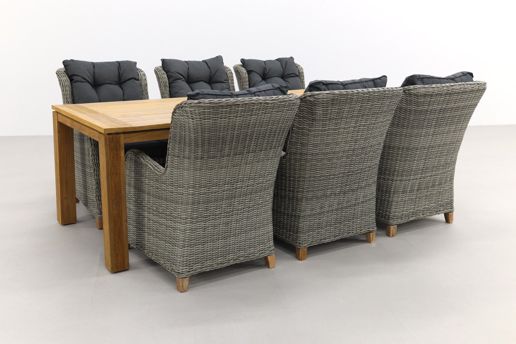 6x Torino Paloma Grey tuinstoel 1x Rome tuintafel 240x100 cm. - Natural Brown