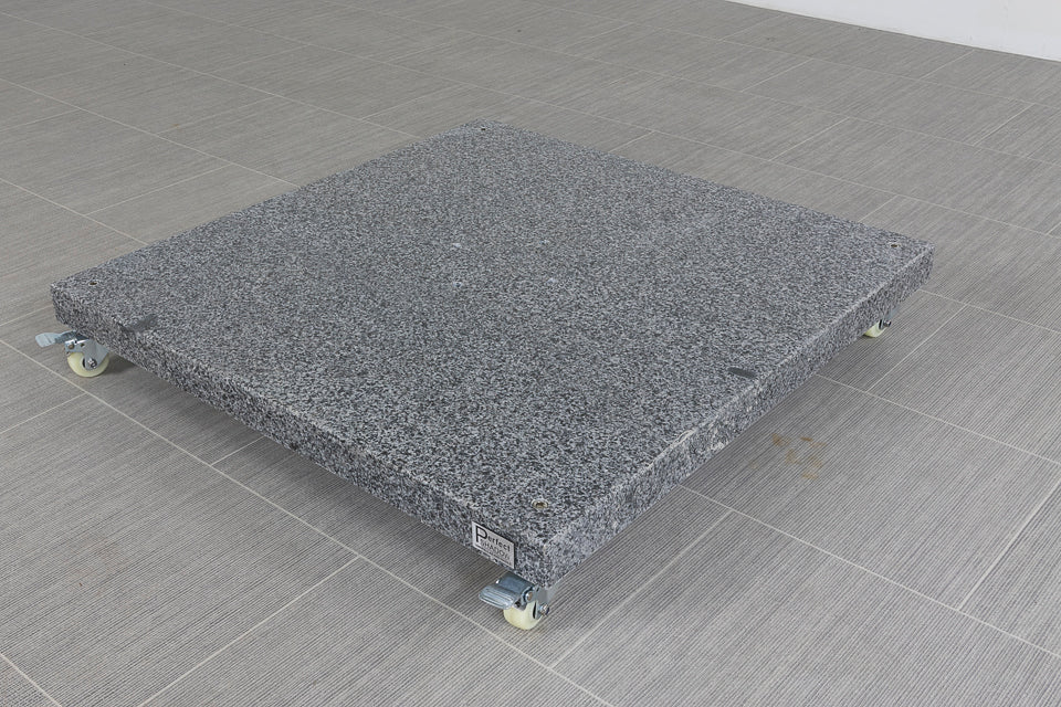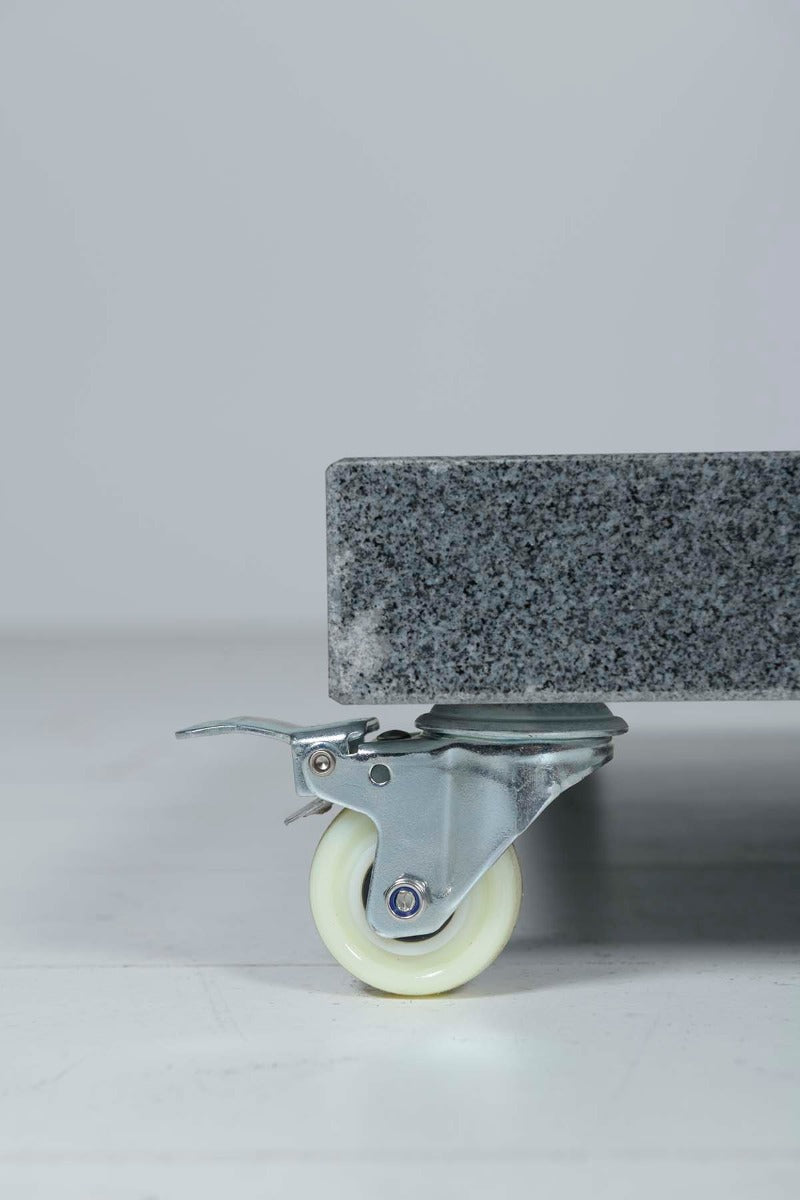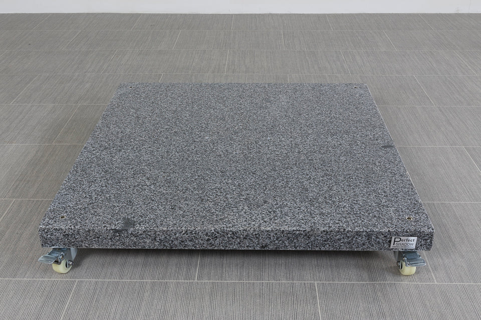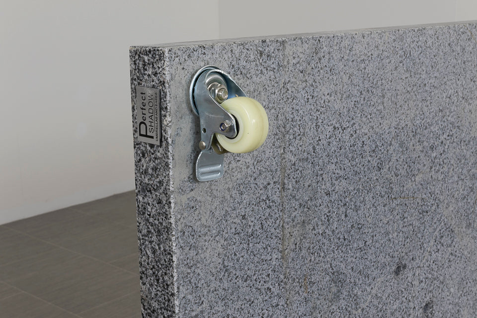 De Siesta parasolvoet Valencia is een robuuste granieten parasolvoet van 90 kg, speciaal ontworpen voor de Siesta parasol van 4 Seasonsn Outdoor. Met schroefgaten op de juiste posities, kun je de Siesta parasol eenvoudig en direct op de voet monteren. Het zware graniet zorgt voor uitstekende stabiliteit, terwijl de grote wielen het mogelijk maken om de voet moeiteloos te verplaatsen, zelfs bij zijn hoge gewicht.
