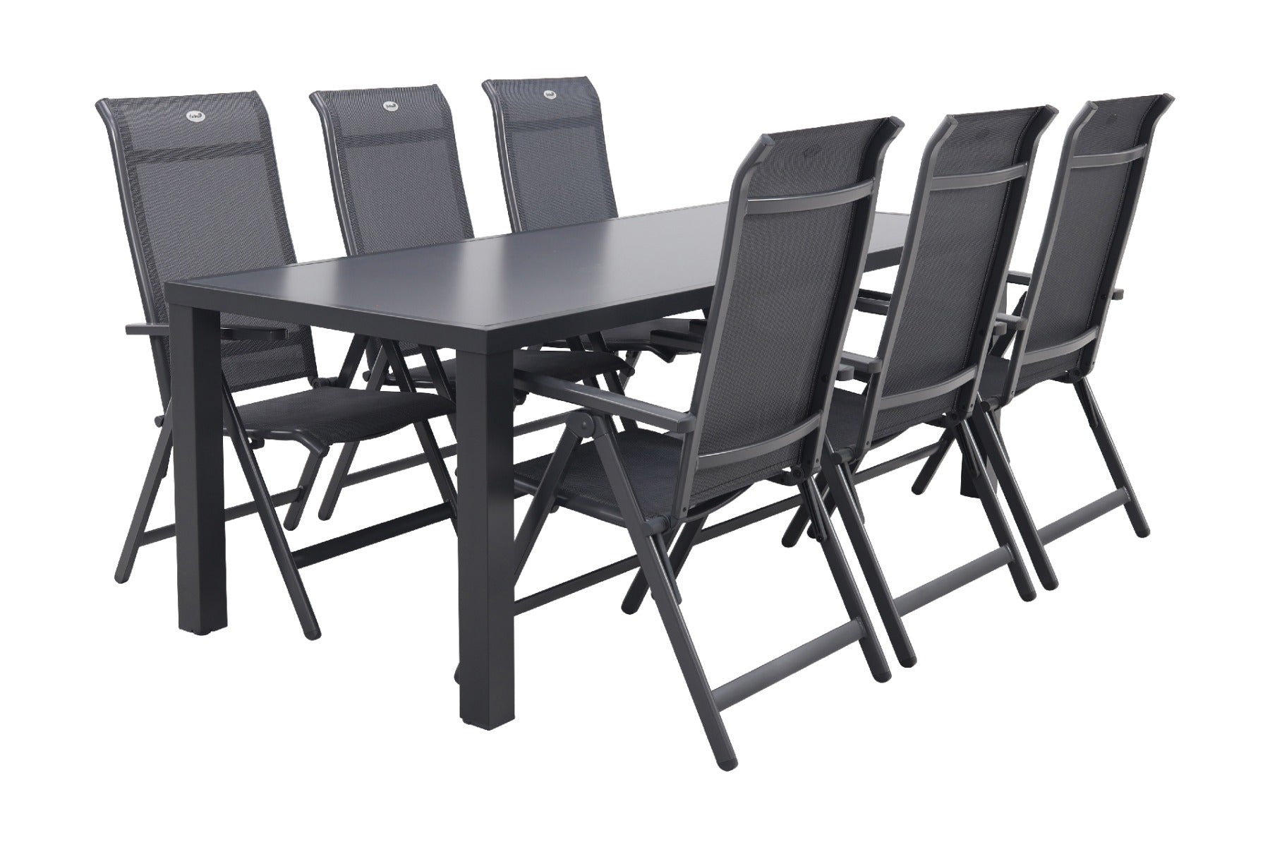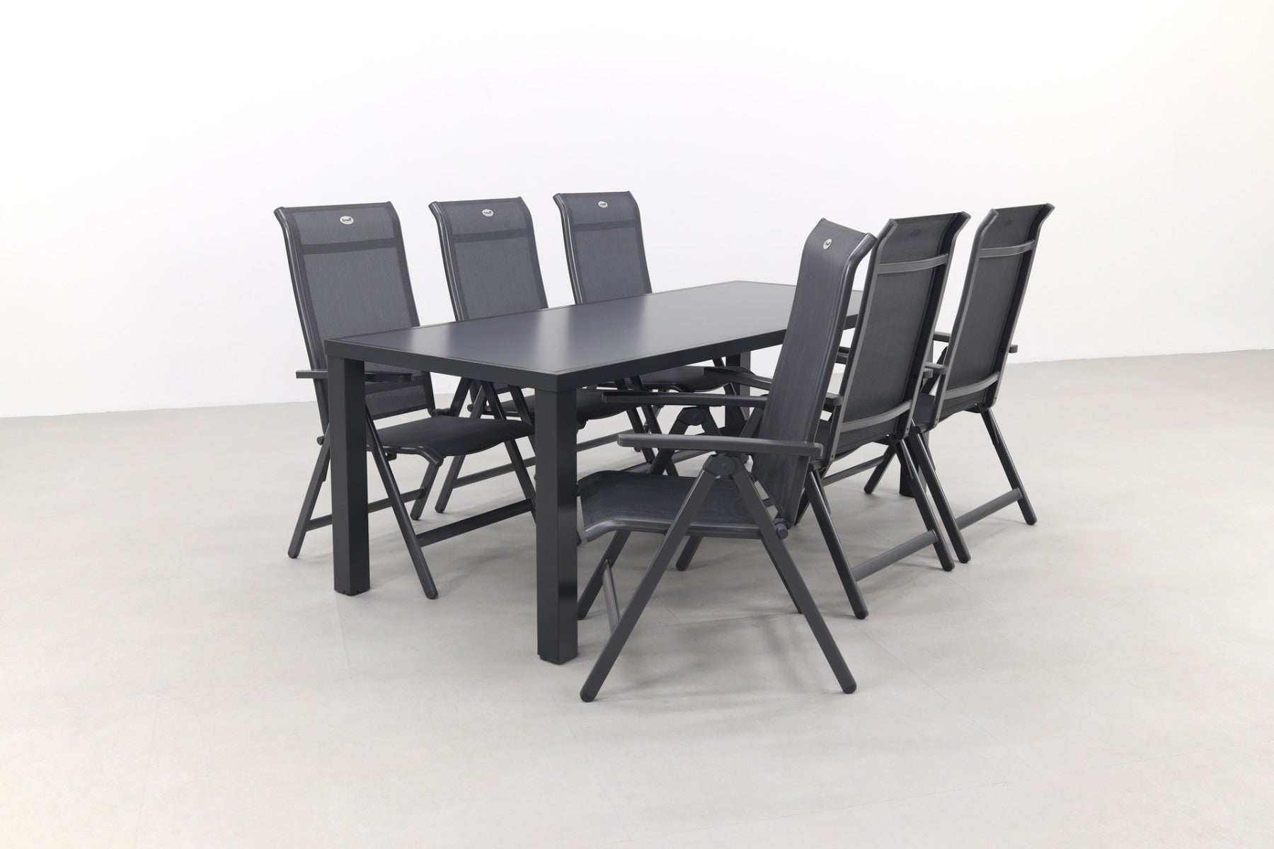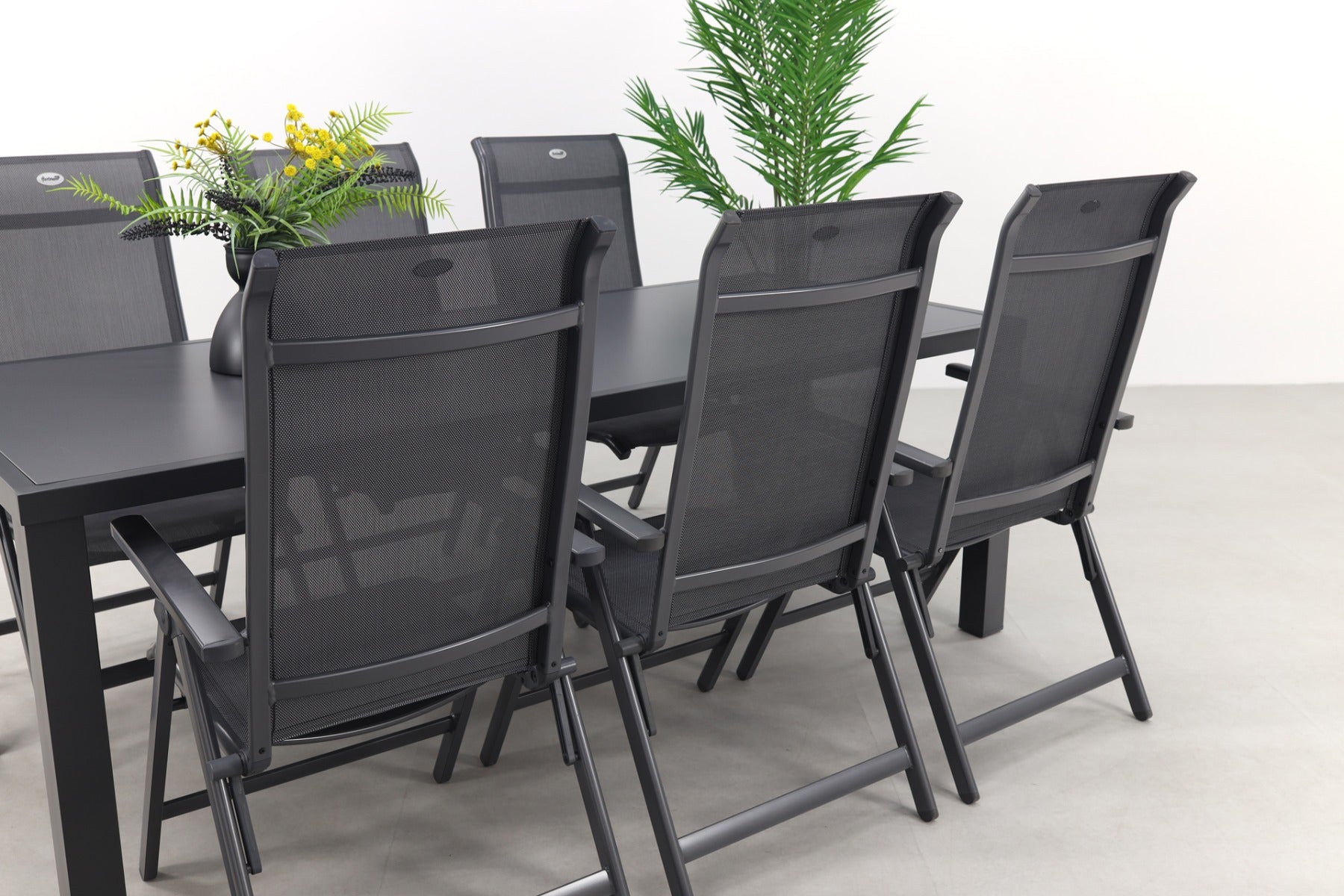 6x Hartman Milaan verstelbare tuinstoel 1x Alma tuintafel 210 x 90 cm.