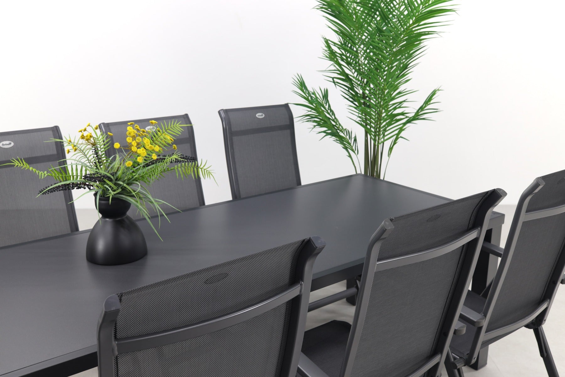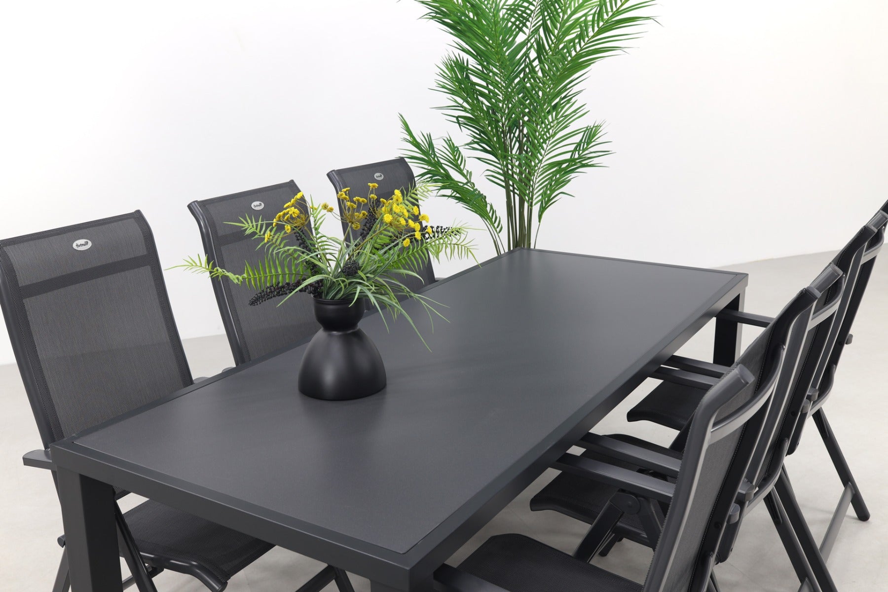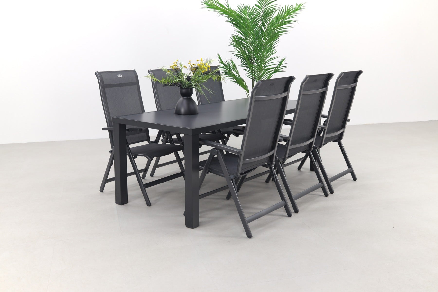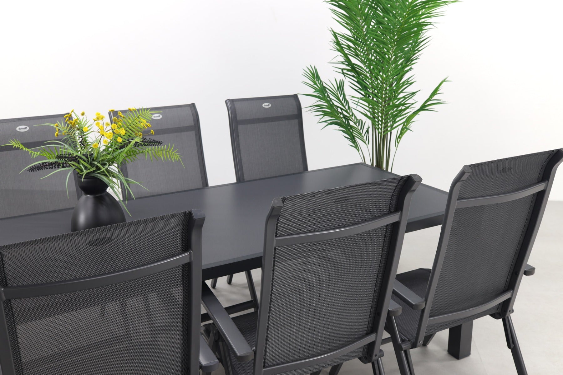 6x Hartman Milaan verstelbare tuinstoel 1x Alma tuintafel 210 x 90 cm.