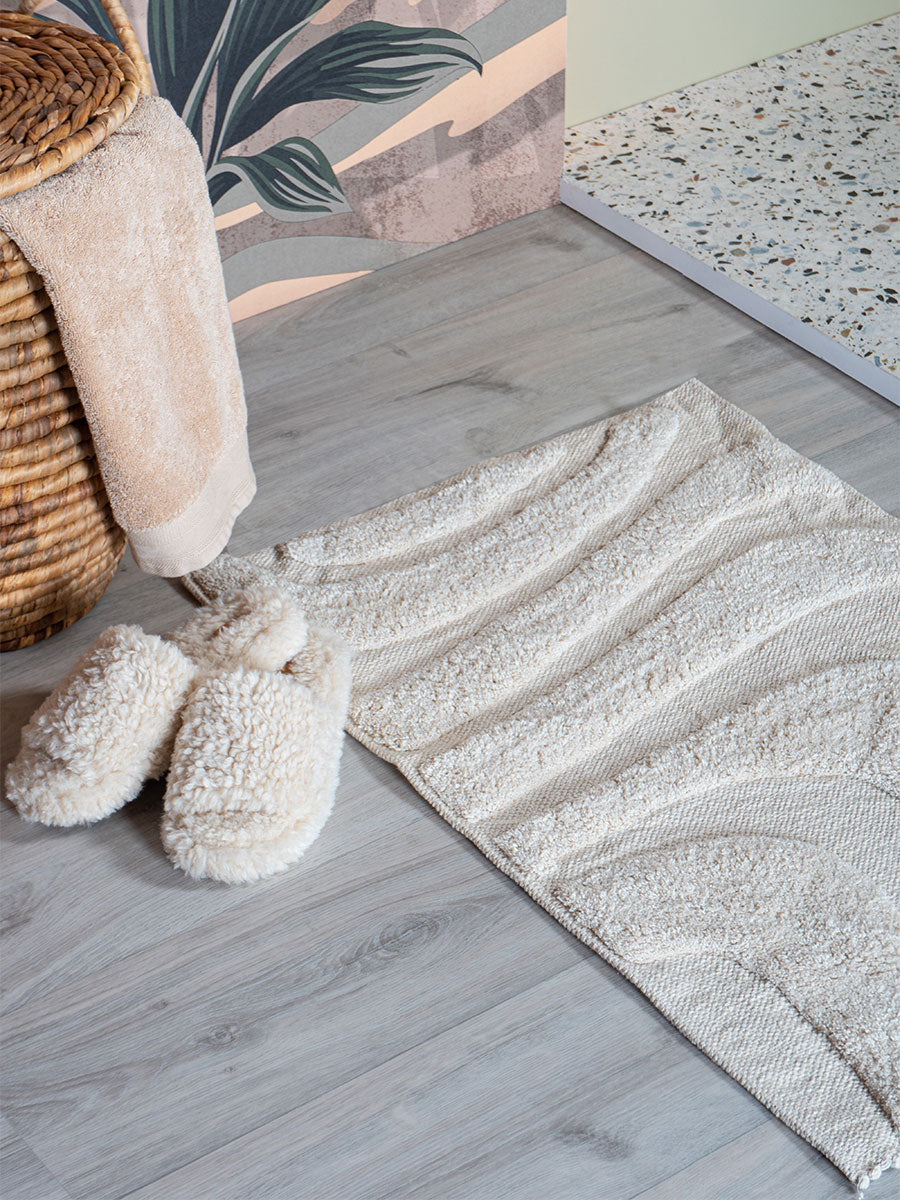 - Wat deze badmat speciaal maakt, is het organisch getuft dessin