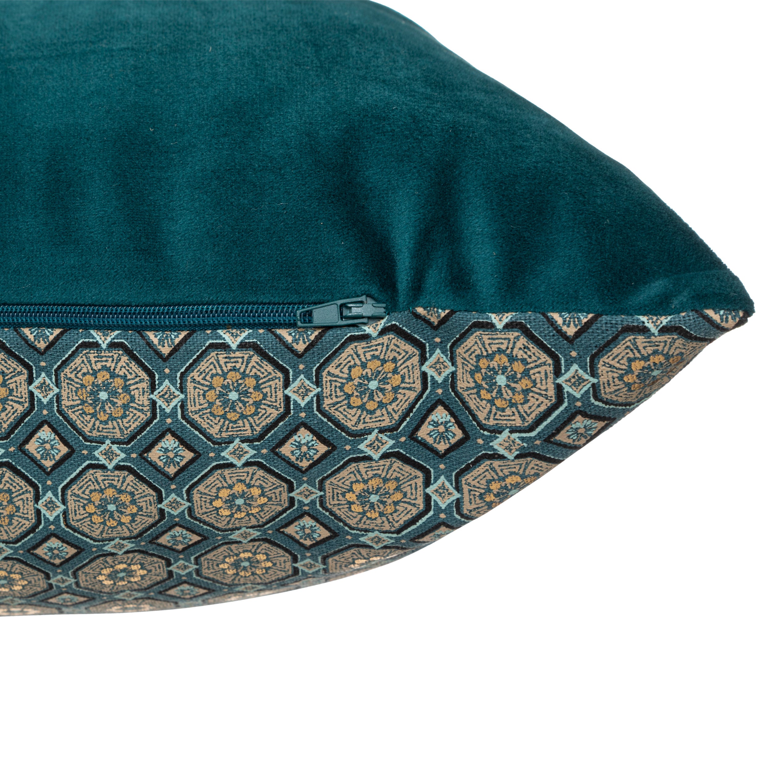 Velvet Kussen Hotel Chic - Petrol Blauw | Goud - 38 x 58 cm (incl.