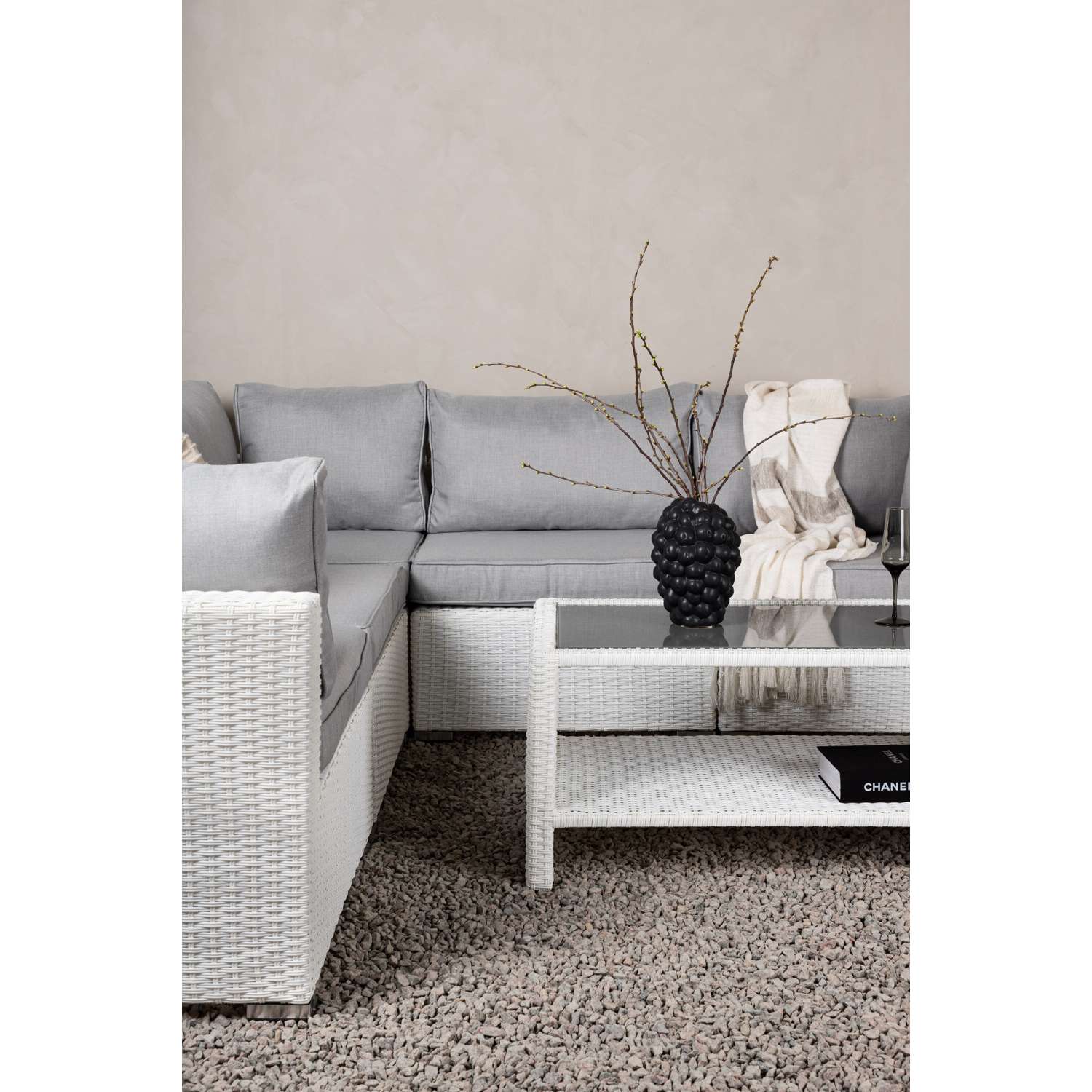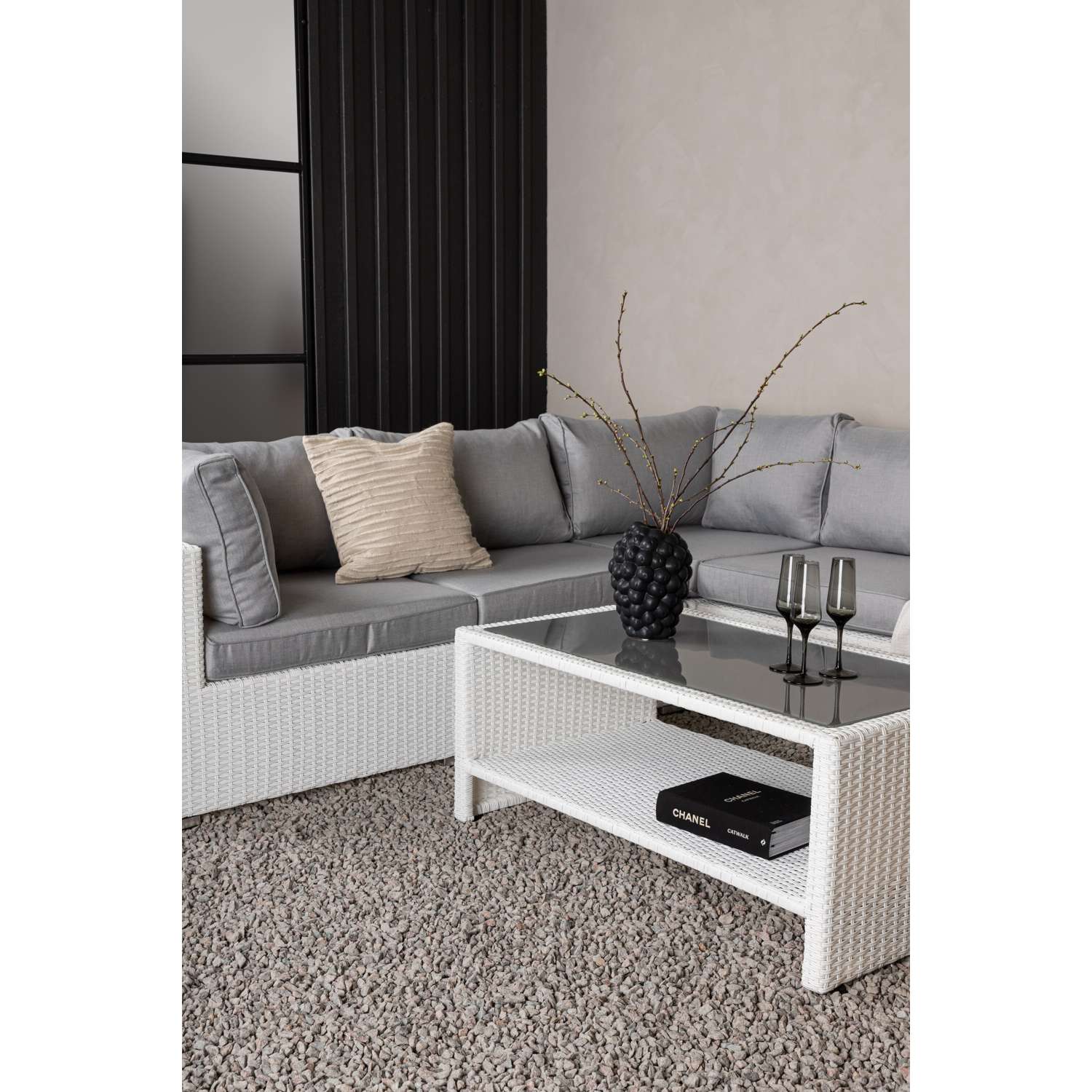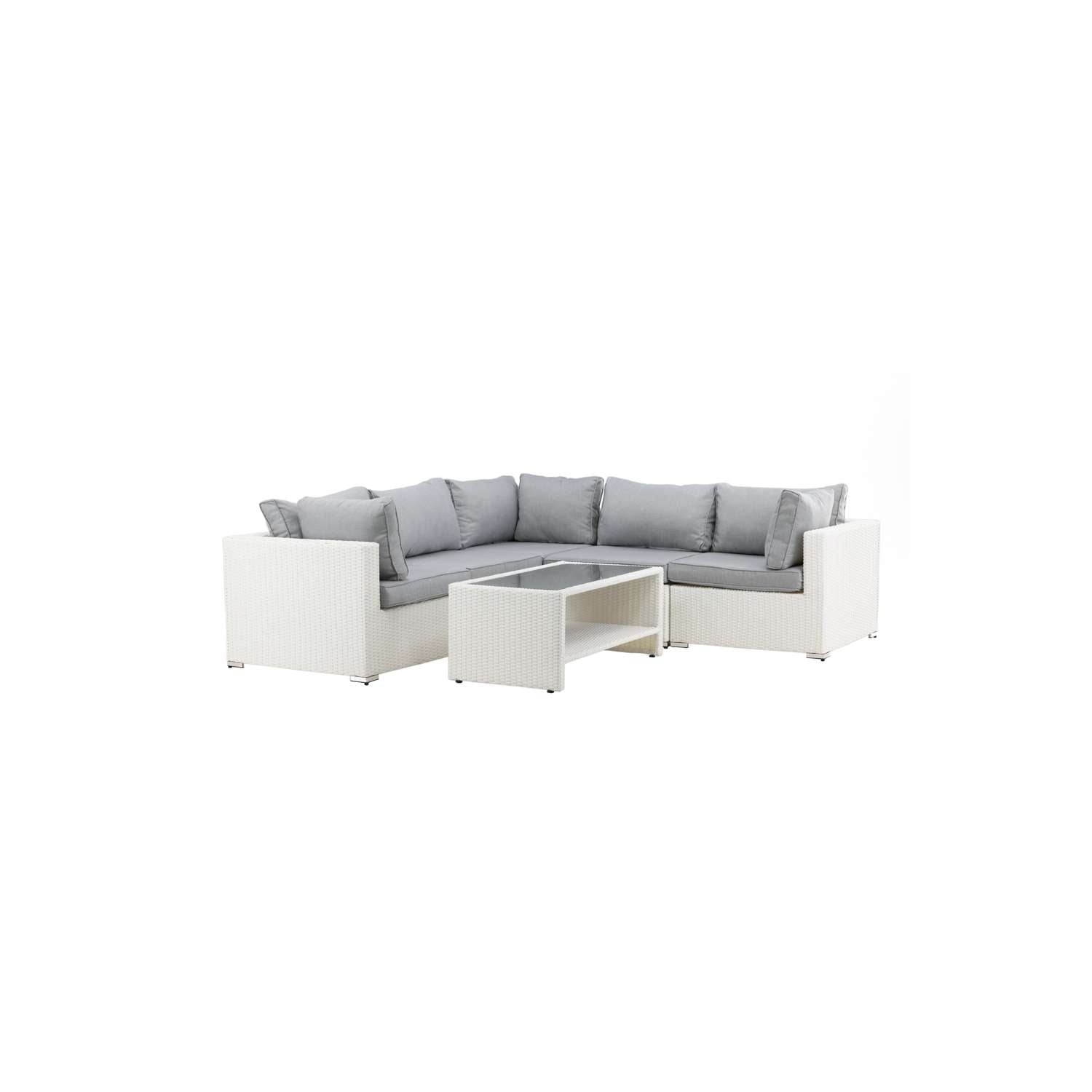 - De loungeset bevat een modulaire hoekbank met 4 zitplaatsen en een hoekstuk dat eenvoudig kan worden aangepast aan jouw wensen.