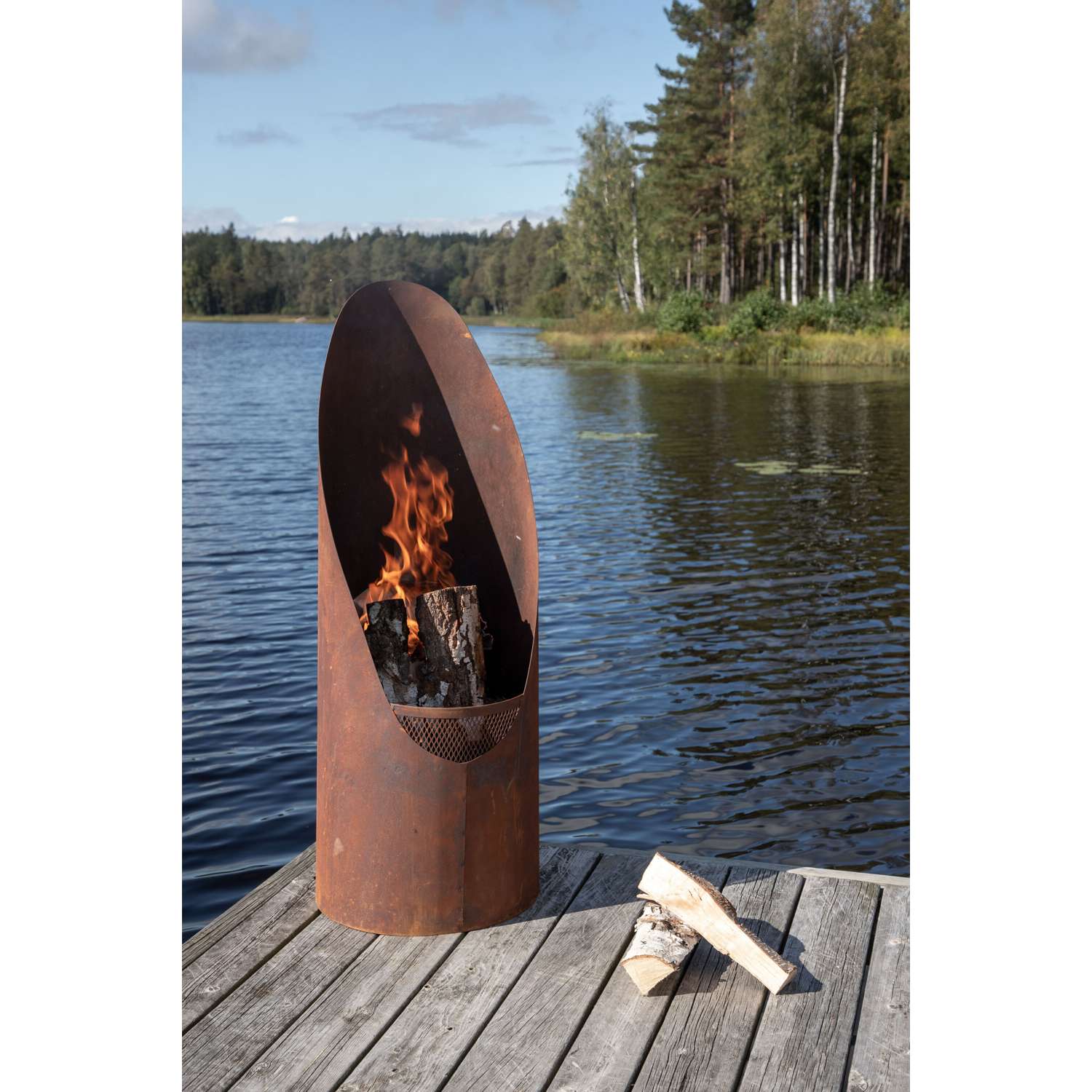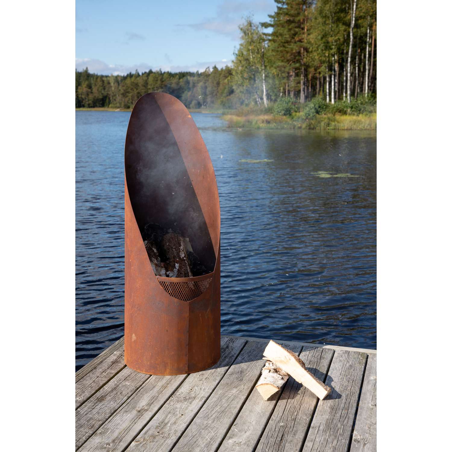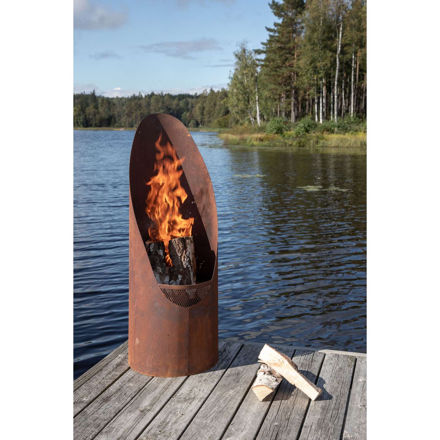 - Deze vuurplaats heeft een rustieke uitstraling in verroest staal en een open ontwerp voor het vuur