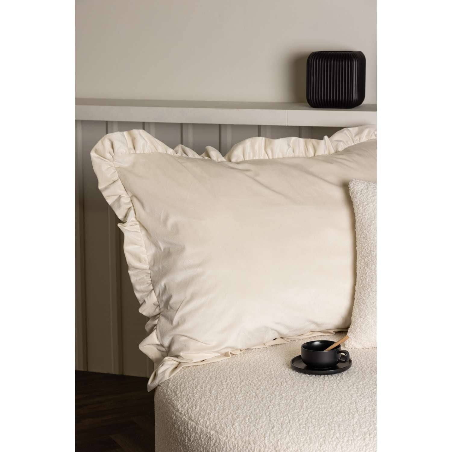 - De fluwelen stof geeft een prachtige glans aan het kussen en zorgt ervoor dat de crèmekleurige witte kleur op zijn best naar voren komt!