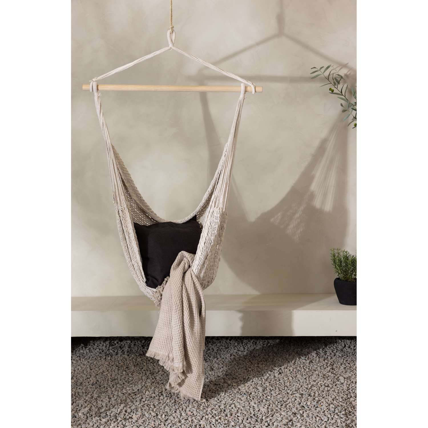 - De touwen worden gedragen door een houten stok die een stijlvolle detail vormt