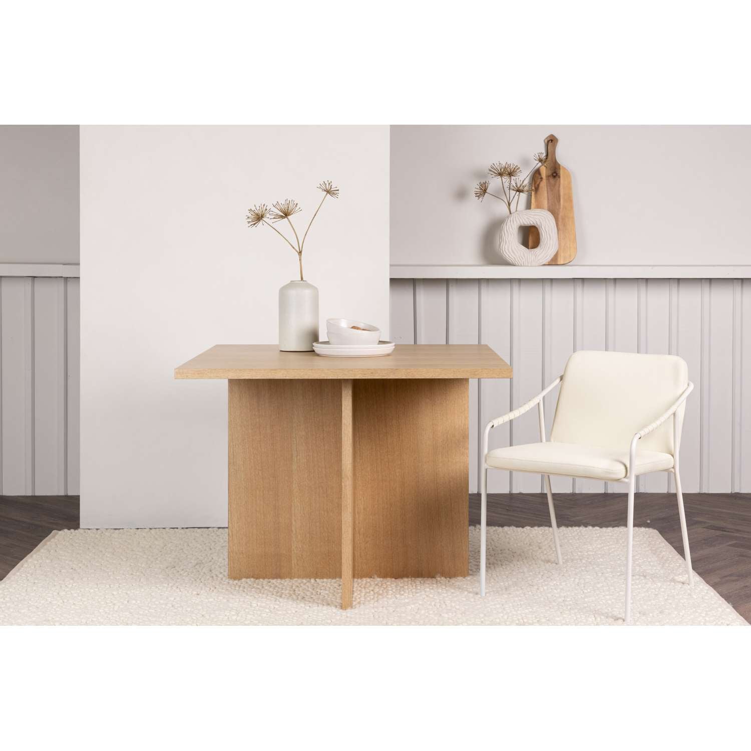 - Een eettafel in de strakke en moderne kleur Naturel.