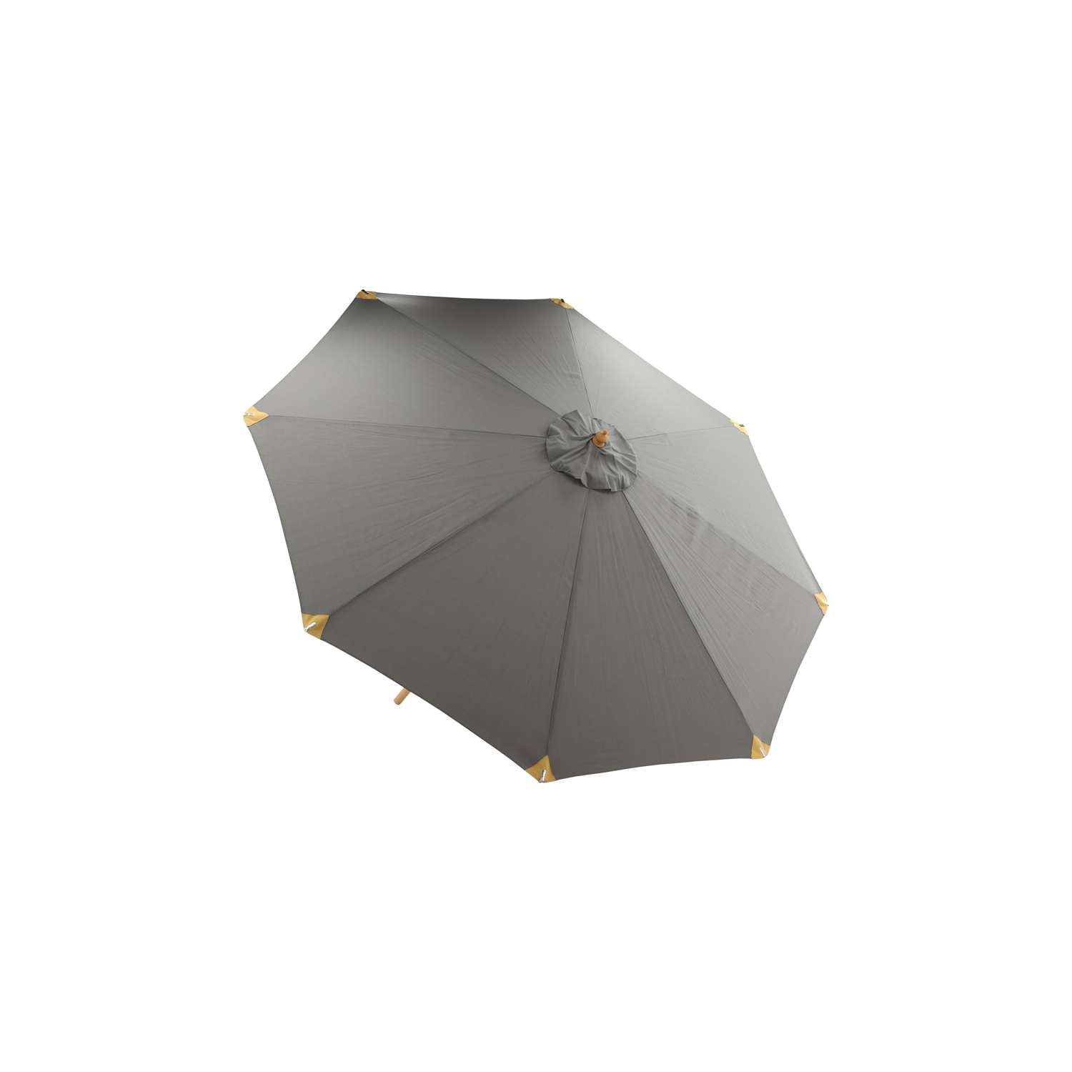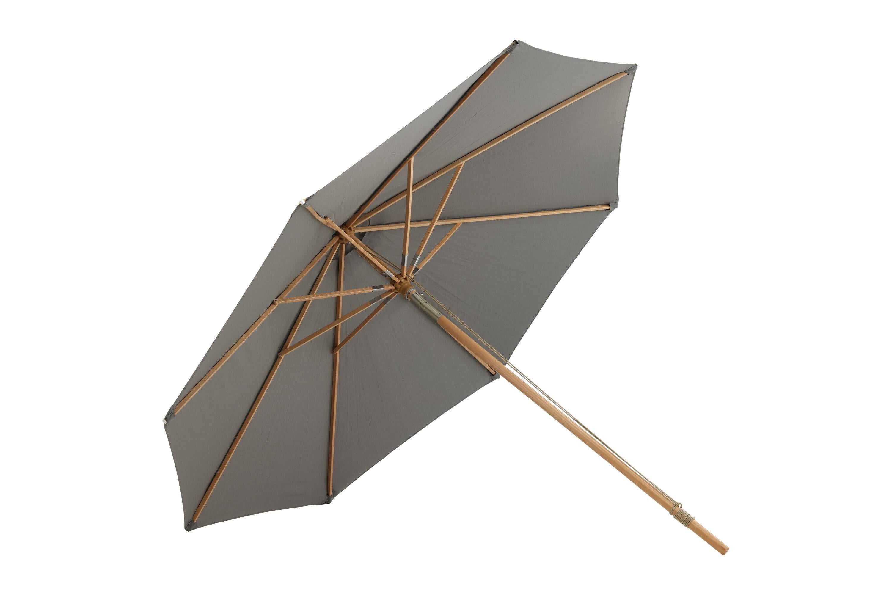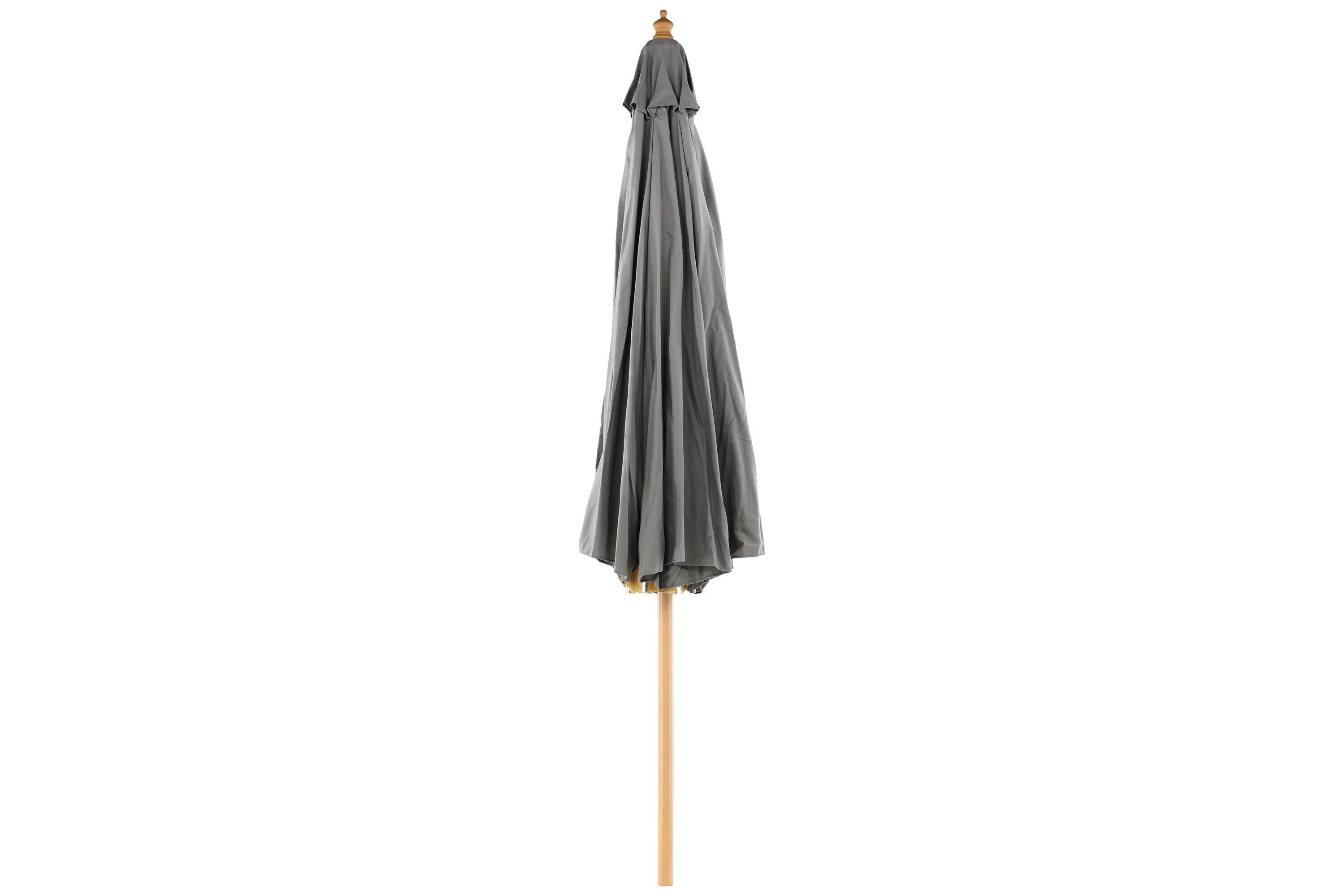 - Deze inklapbare parasol met grijze stof en houten frame heeft een moderne en tijdloze uitstraling die perfect past bij elk huis en iedere tuinstijl.