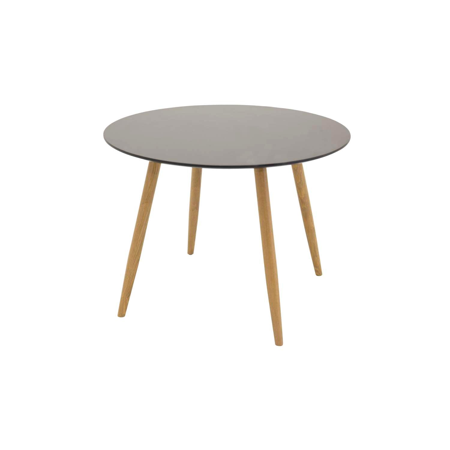 Een gezinsvriendelijke ronde eettafel uit de Plaza-serie met een MDF-tafelblad en metalen tafelpoten.