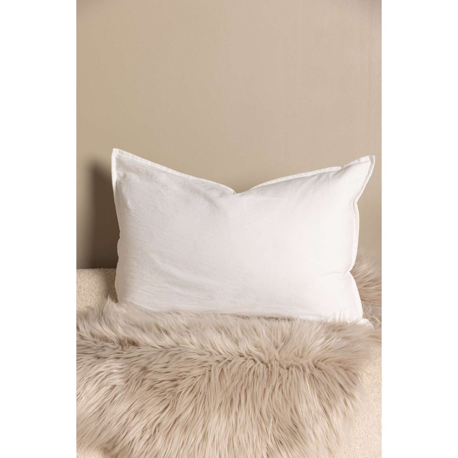 - De kussensloop heeft een discrete rits aan de achterkant en een paspelrand van dezelfde stof