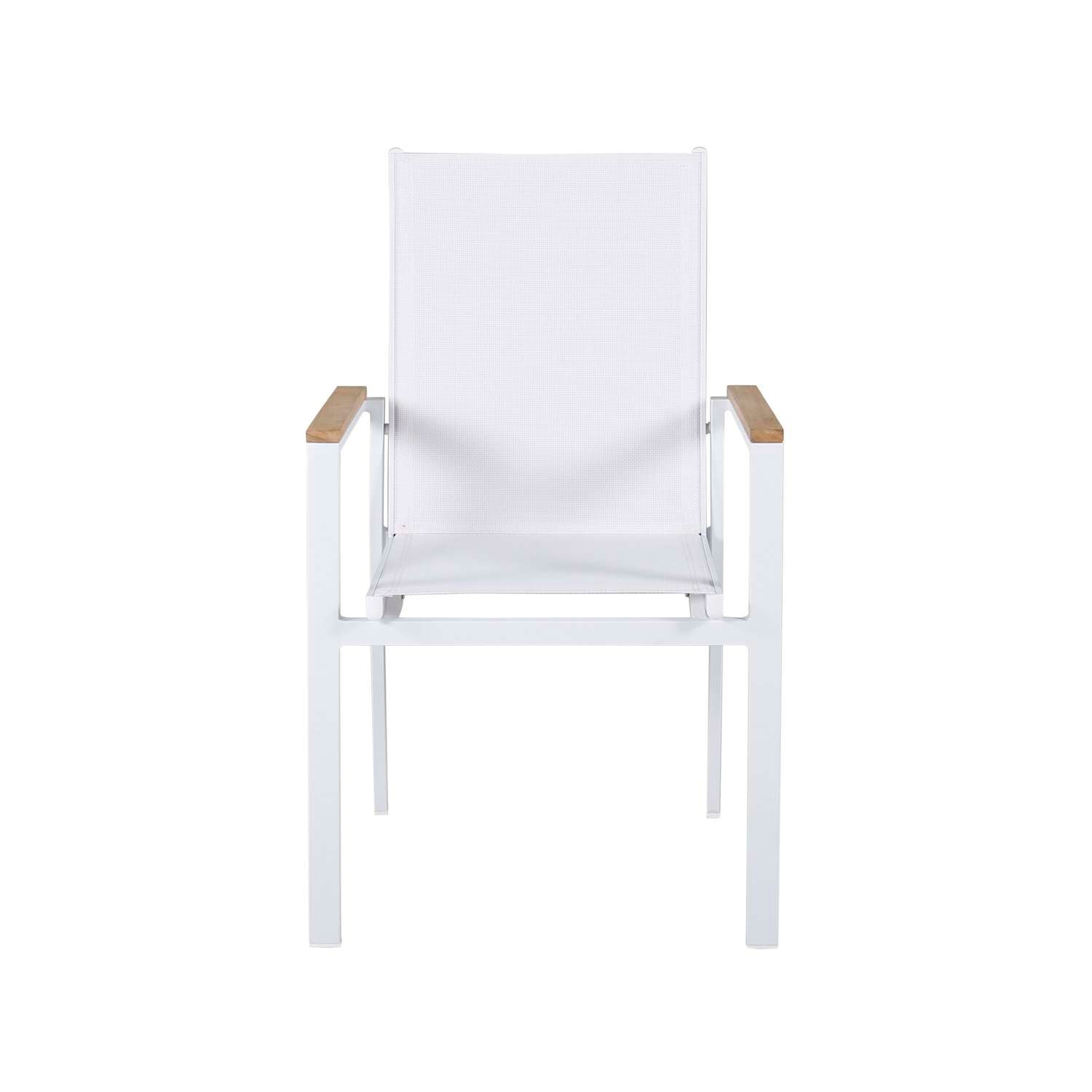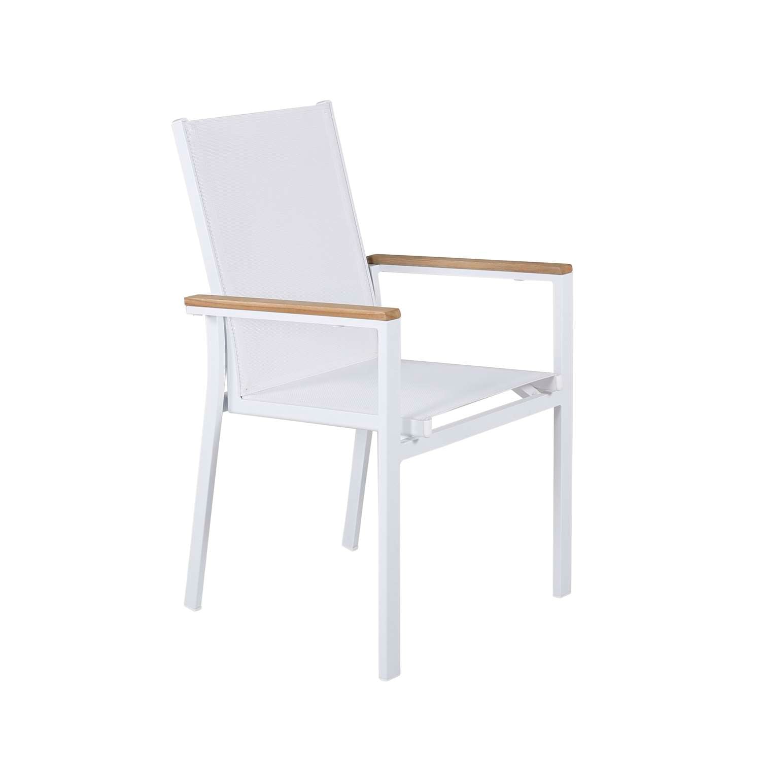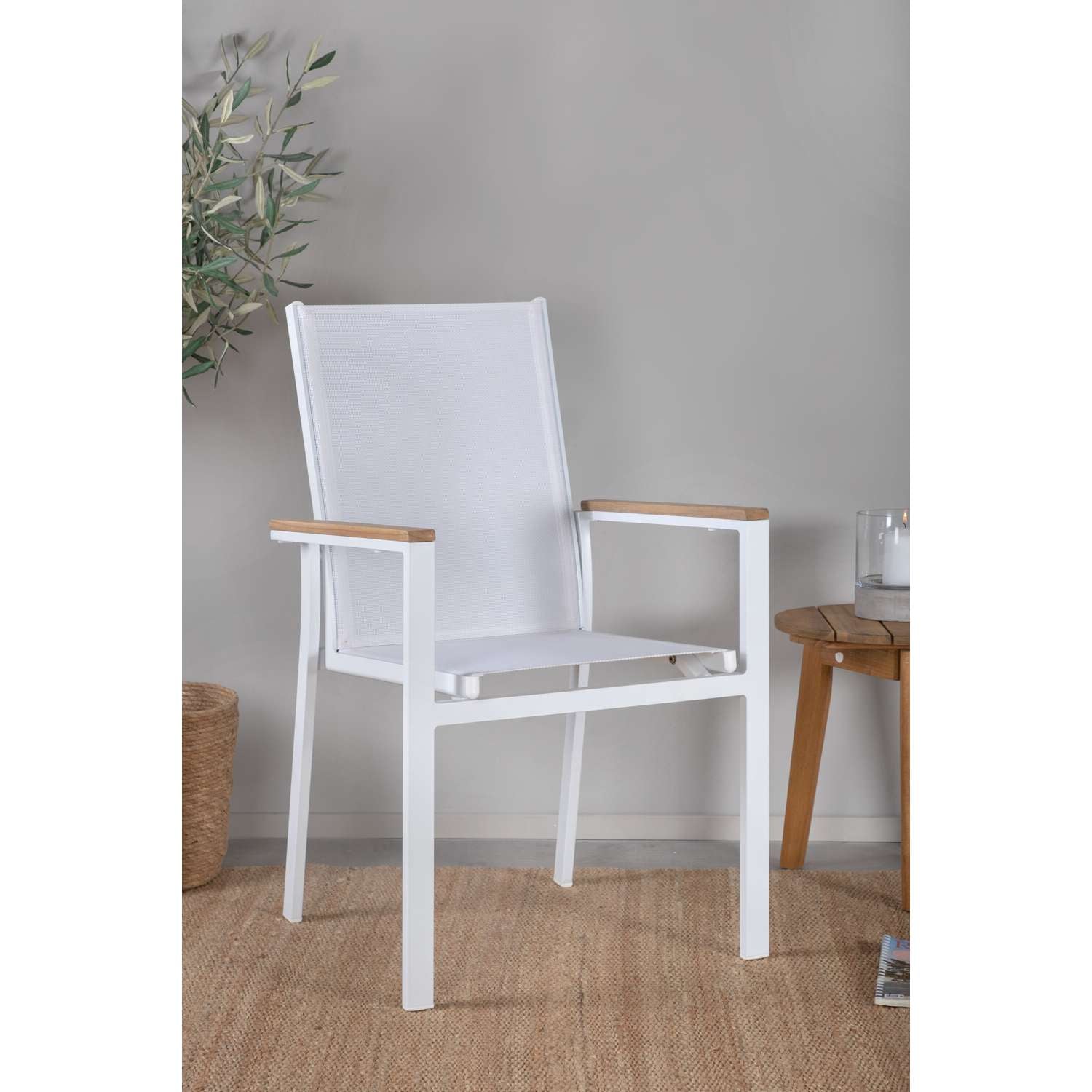 - De armleuningen zijn decoratief van teakhout, wat een smaakvol detail creëert