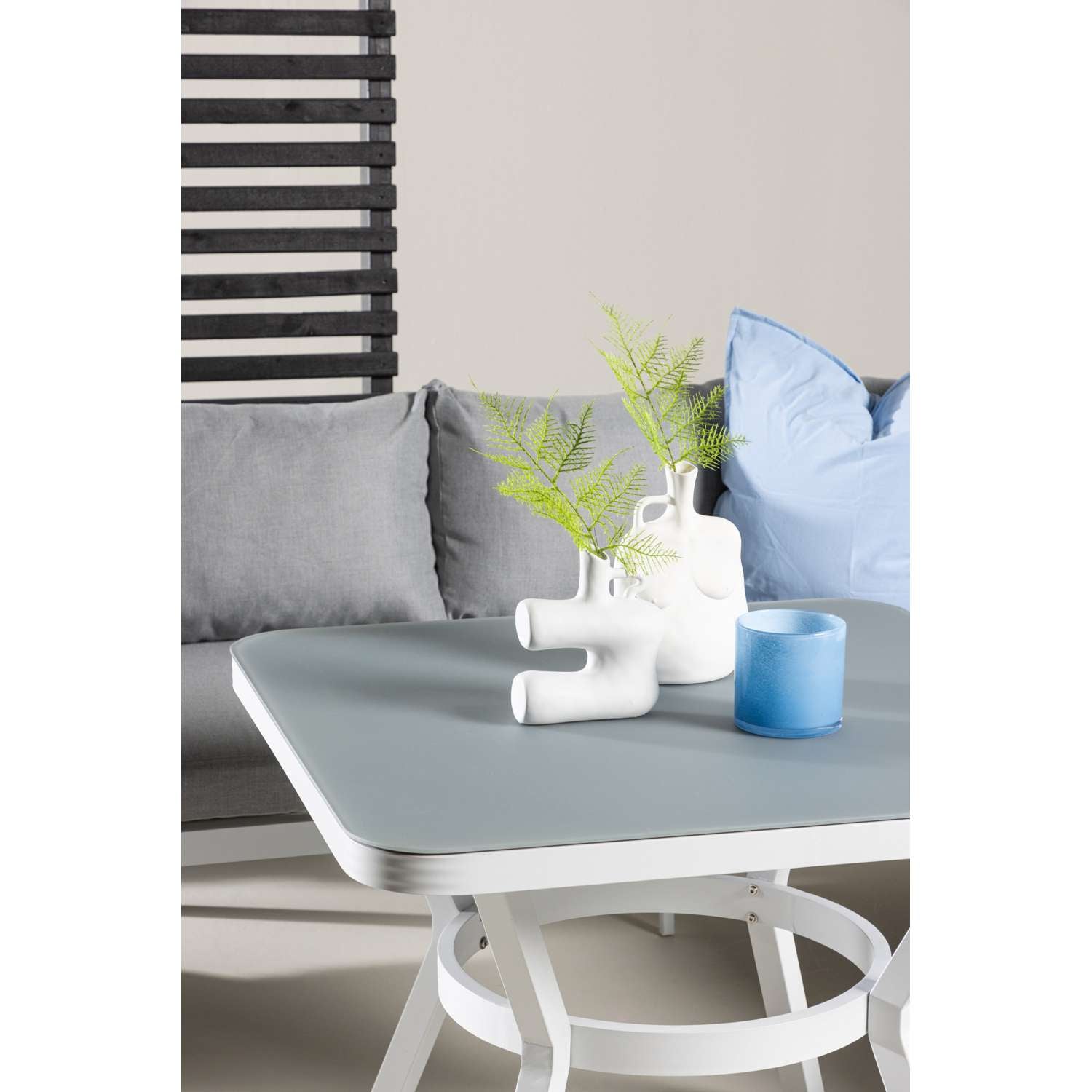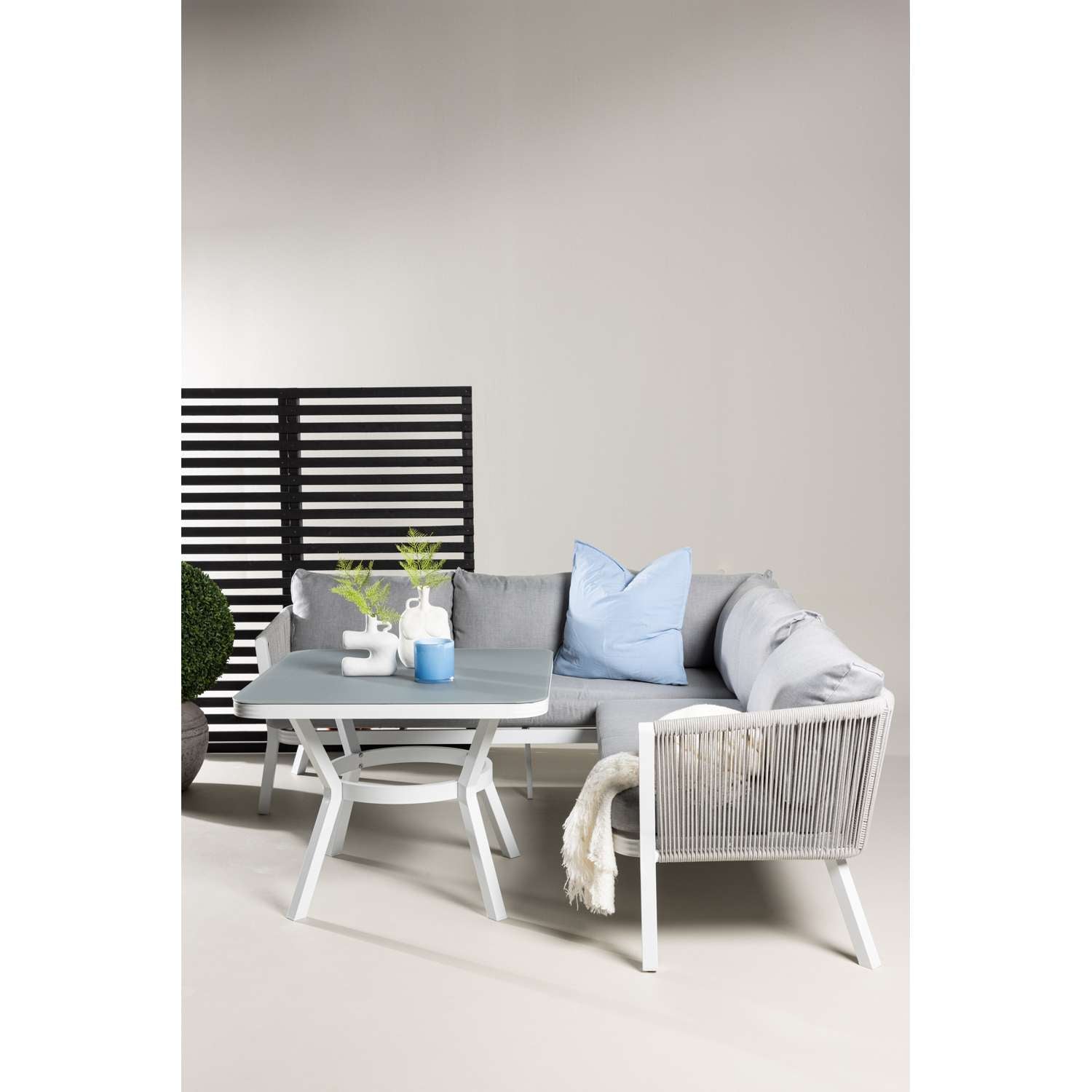 - Duurzame grijze kussens zijn inbegrepen en de set biedt plaats aan in totaal 5 zittende gasten