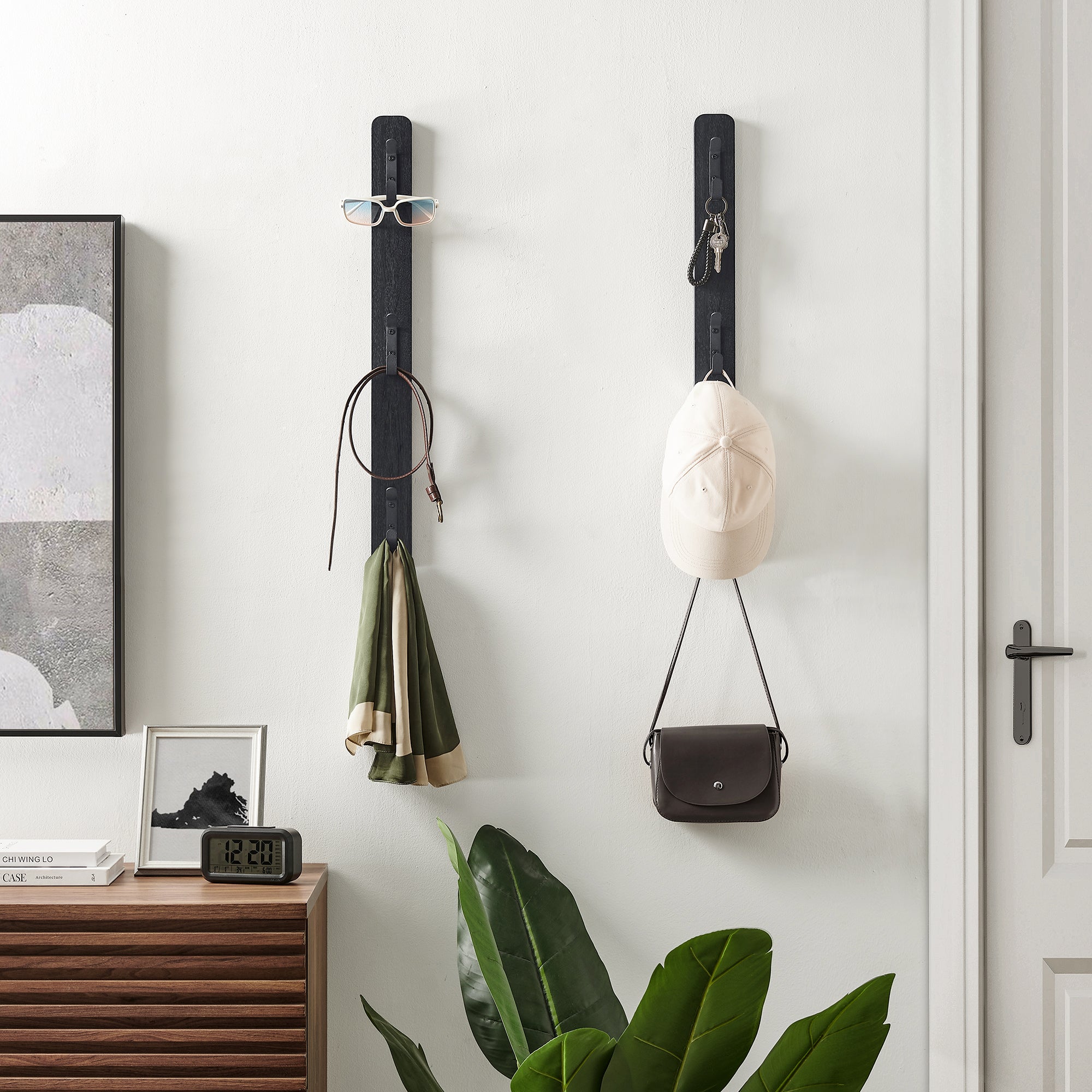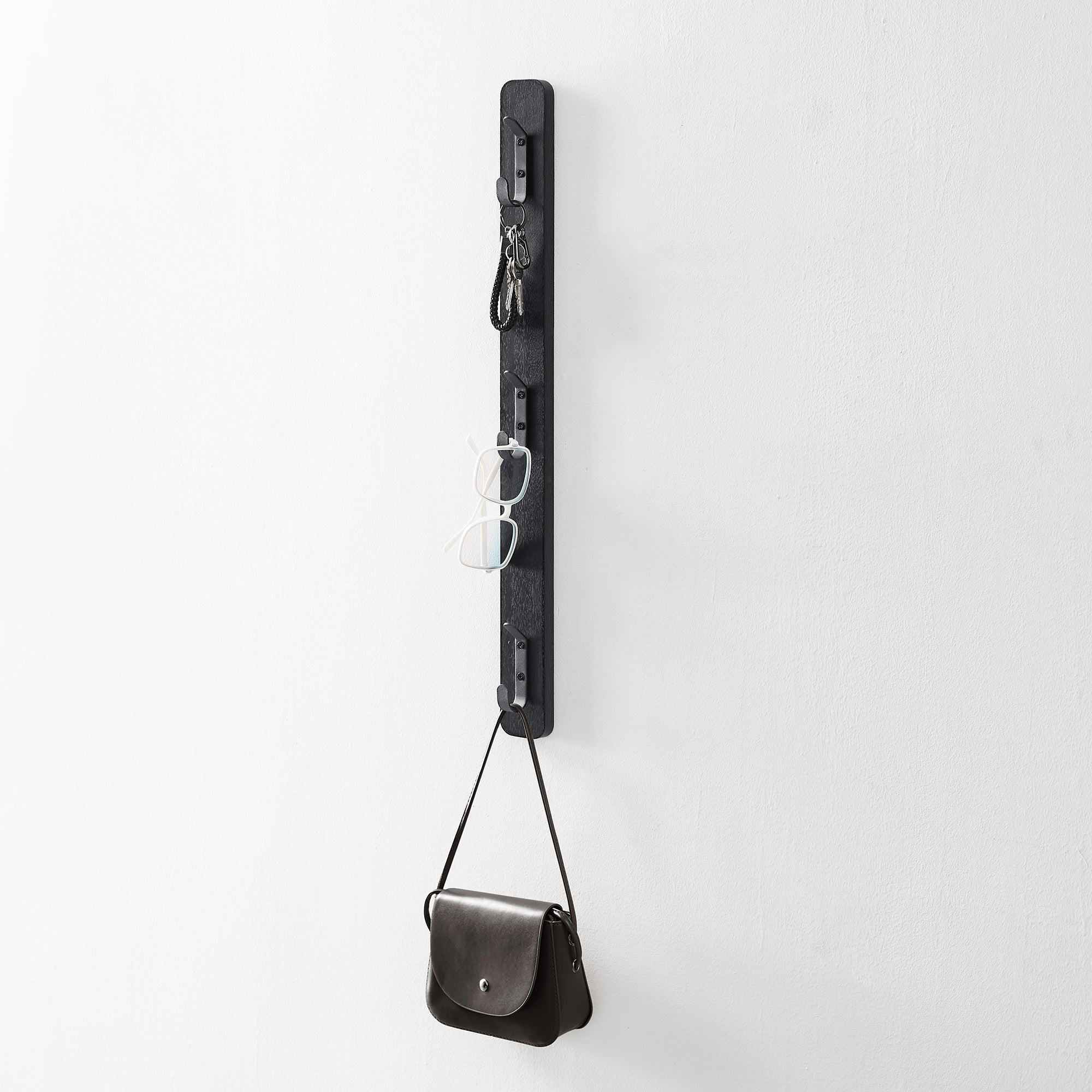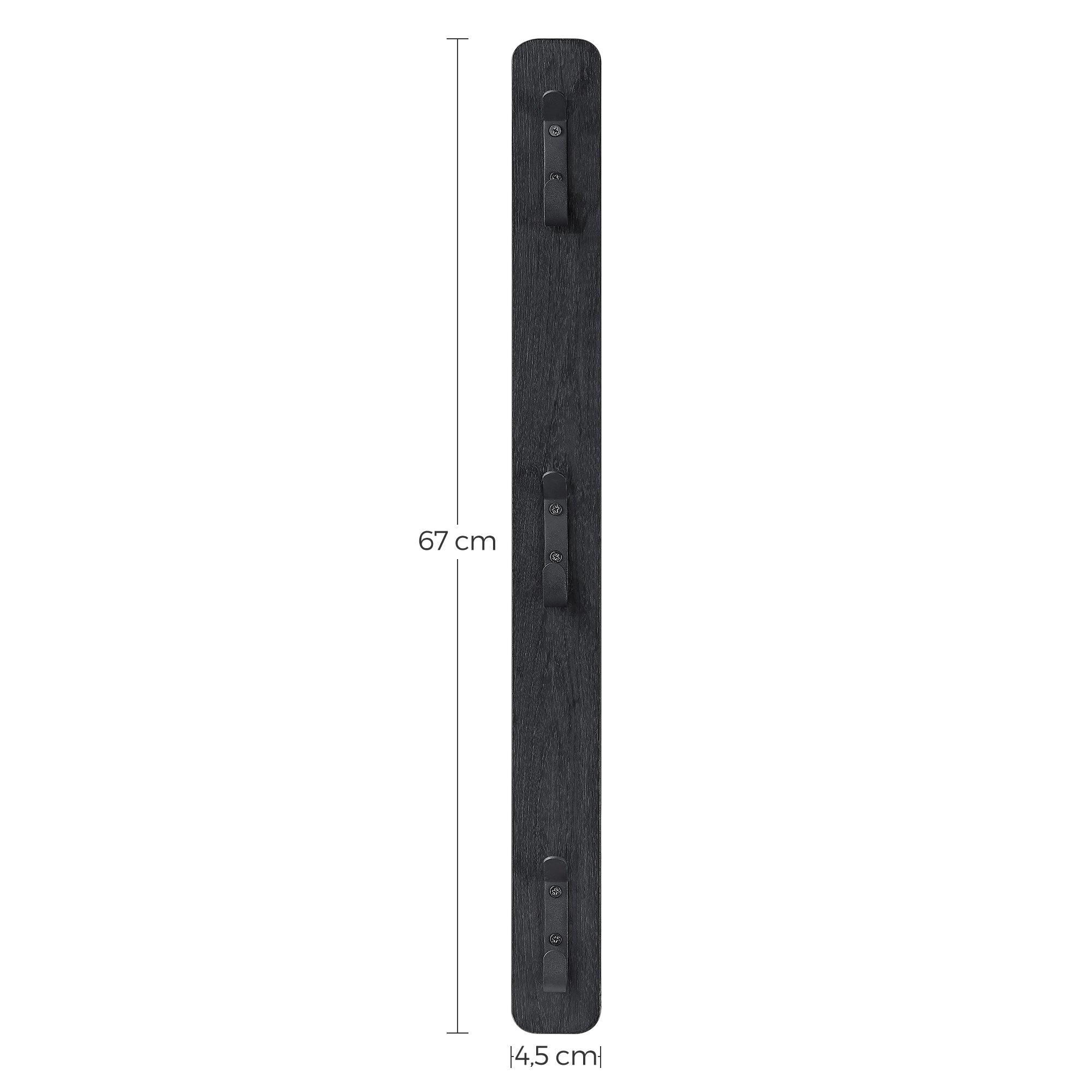 Verticale wandkapstok - met 3 haken - 6x67 cm - zwart