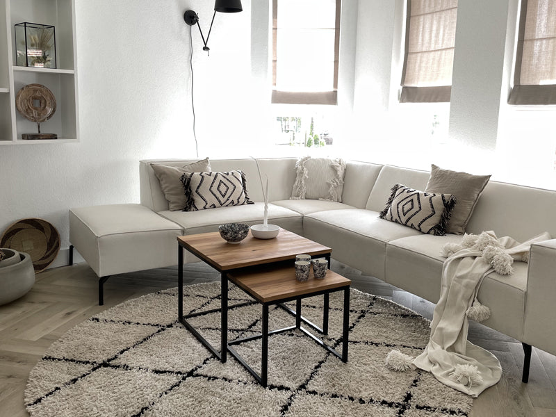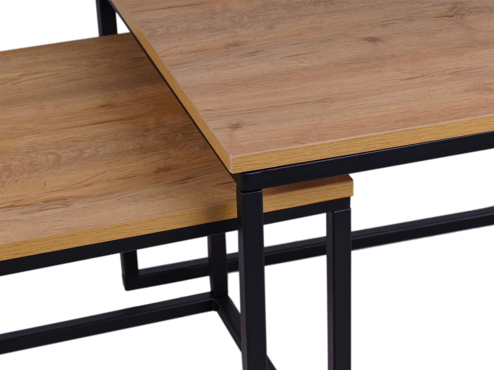 Toe aan een nieuwe stoere look in je interieur? Dan is onze vierkante salontafel set XL Kiev perfect! Het robuuste zwarte onderstel in combinatie met de rustiek eiken fineer tafelbladen geven jouw interieur al snel die warme Scandinavische uitstraling. Dankzij de natuurlijke fineer houtkleur is de set makkelijk te combineren en nog makkelijker te decoreren. Een paar mooie planten en kaarsen erop en met weinig inspanning heb je een hele nieuwe look in je woonkamer!