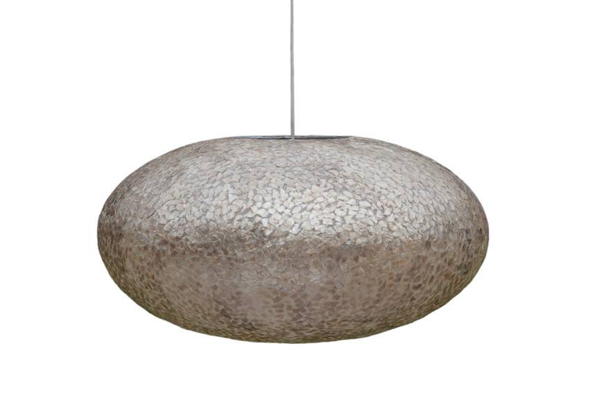 Elke lamp wordt met de hand vervaardigd in Indonesië en bestaat uit natuurlijke Capiz-schelpen die met zorg zijn geselecteerd. Deze schelpen reflecteren het licht op een unieke manier en zorgen voor een warme en speelse lichtval in de ruimte.