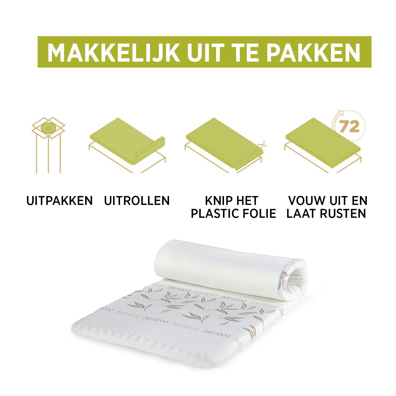 Minder pijn en meer comfort Het topdekmatras verandert elke vloer in een droommatras. Leg bamboe relax topdekmatras gewoon over je versleten matras of direct over een oncomfortabele bank. Het biedt uitstekende ergonomische ondersteuning voor elk deel van het lichaam op elk oppervlak.