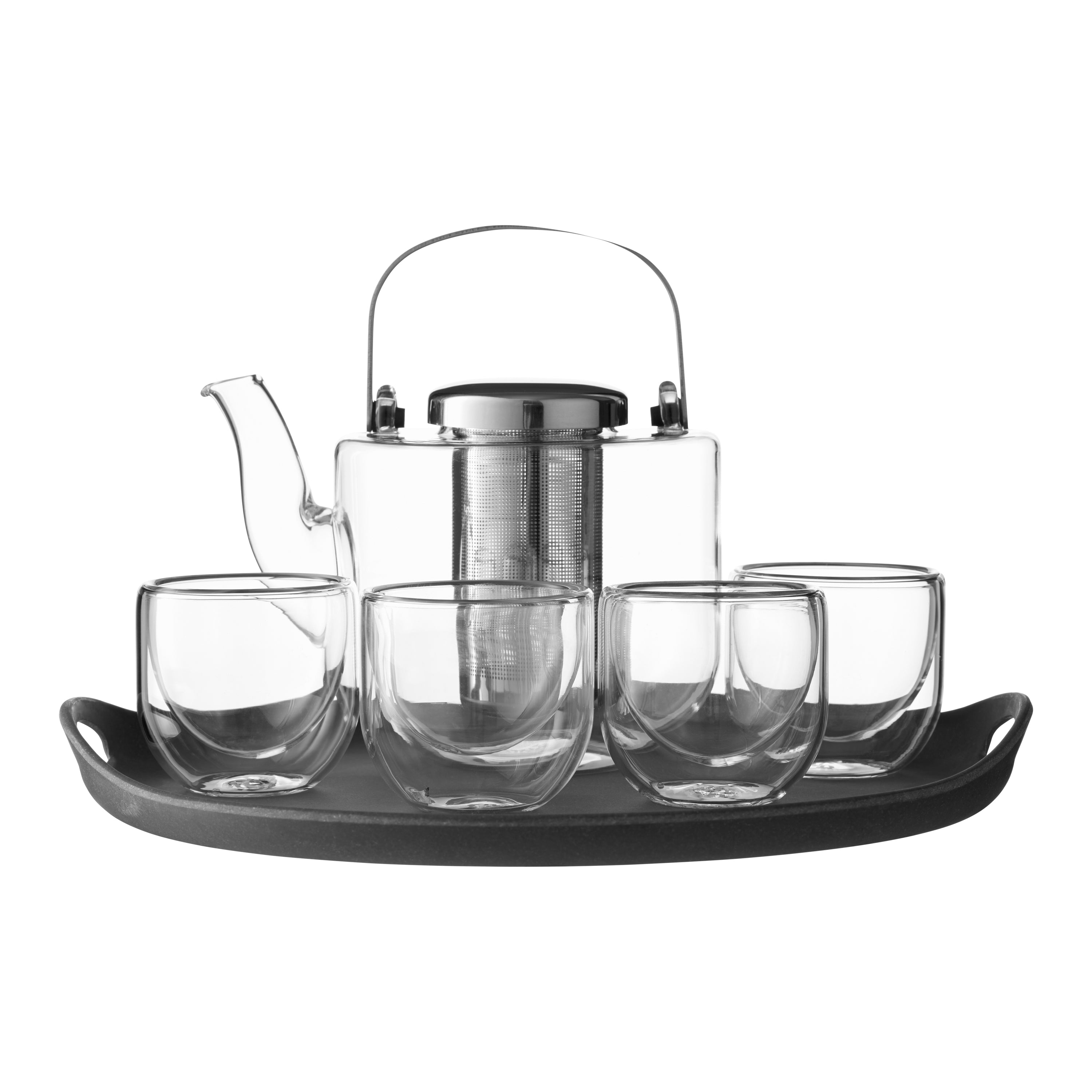 - Stijlvolle theeset met 1 dienblad, 1 theepot en 4 theeglazen
