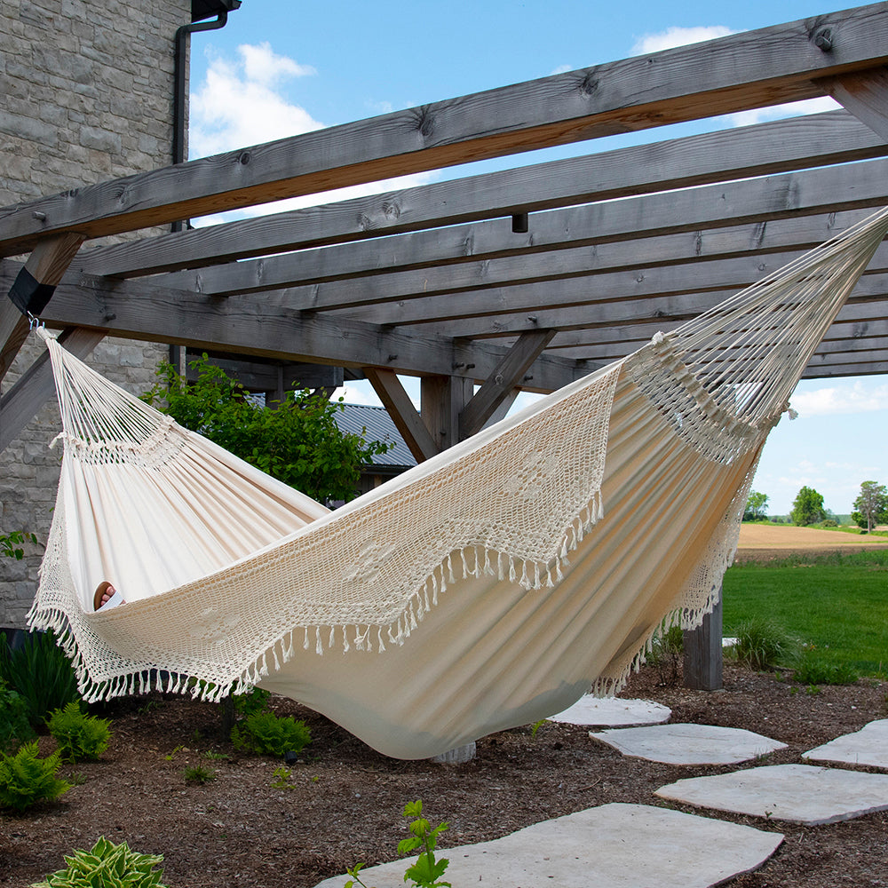- Op meerdere manieren vast te maken; tussen bomen of een standaard (excl.)
