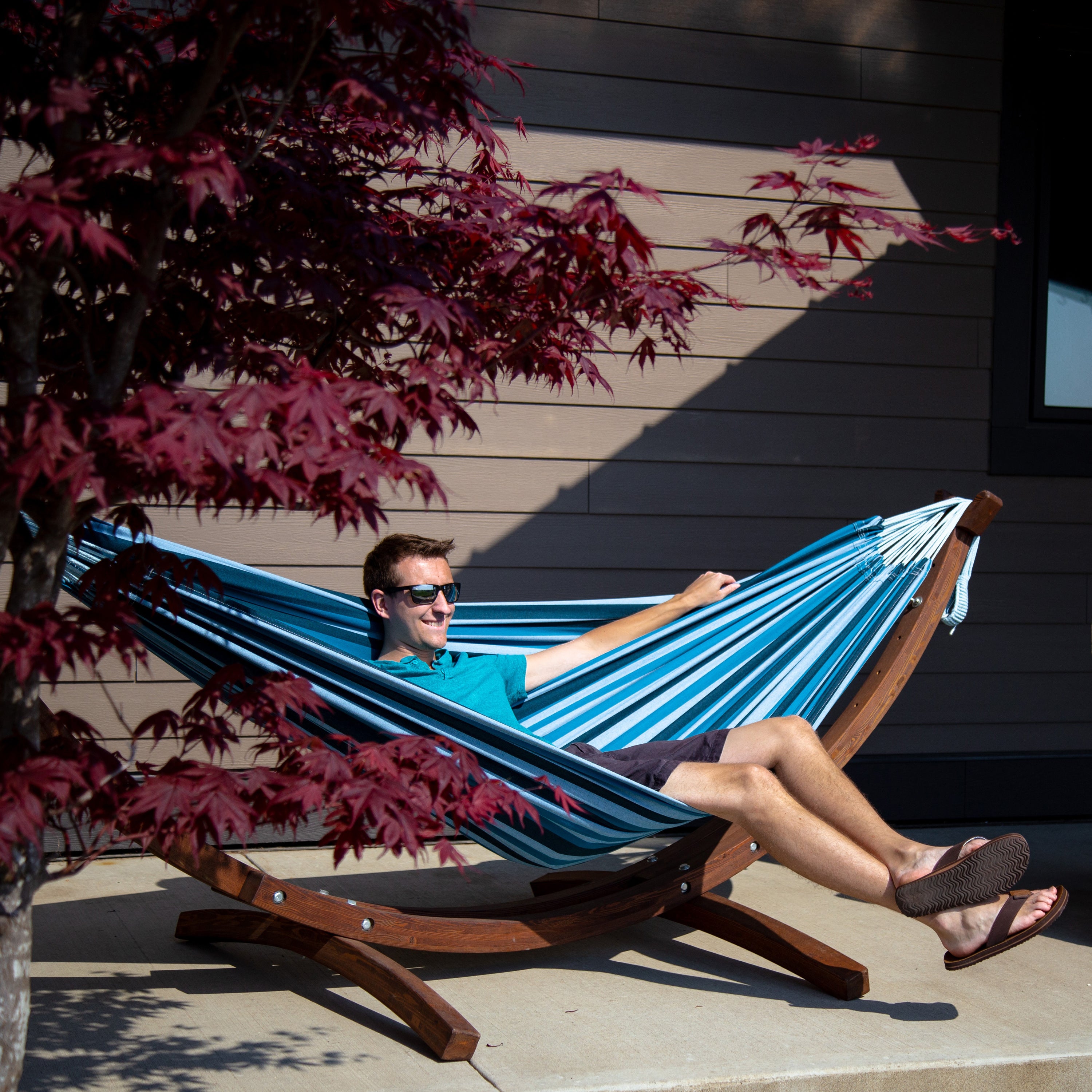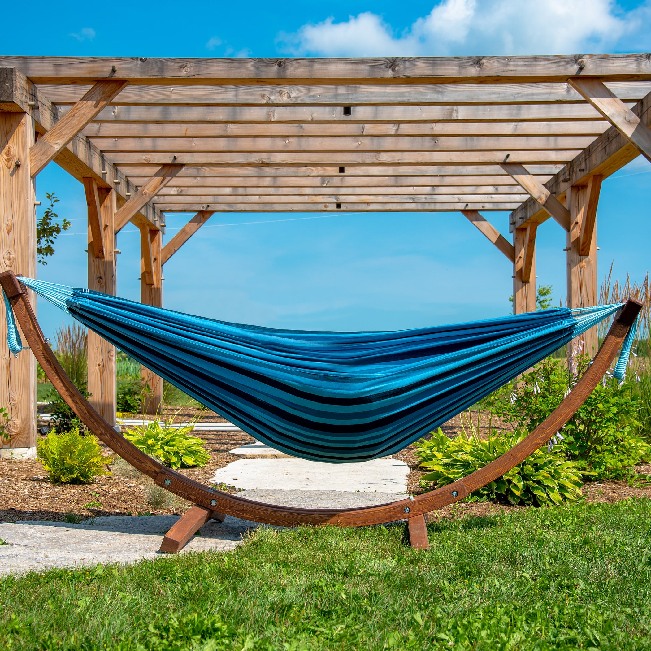 Inclusief standaard Dankzij het stevige standaard kun je deze hangmat overal in je tuin neerzetten. Je hoeft dus niet meer op zoek naar die twee perfecte bomen of houten palen, ideaal! Het doek is van dubbelgeweven katoen zodat het lekker stevig is en dus jarenlang mee gaat. De hangmat met stand wordt inclusief bevestigingsmateriaal geleverd.
