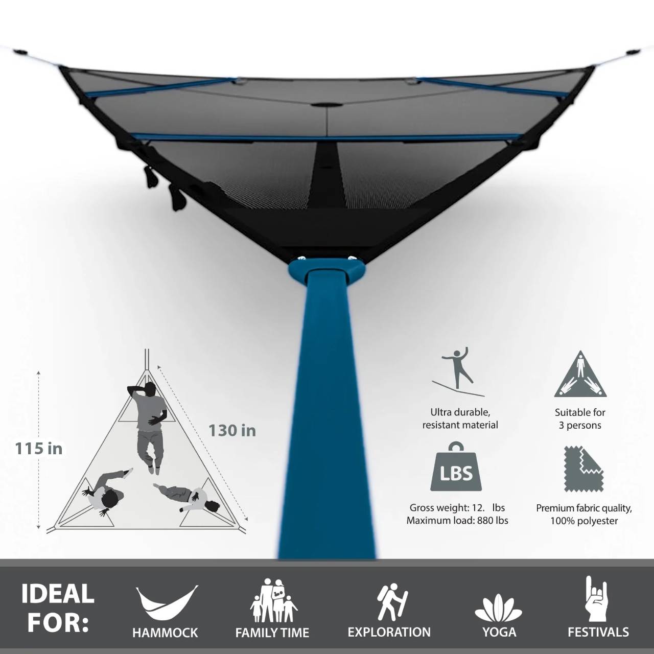 - De ultieme hangmat, geschikt voor 3 volwassen of 5 kinderen