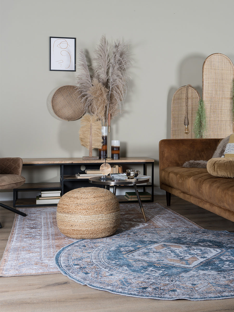 - De kleurrijke vloerkleden zijn te herkennen aan de vintage print en het medaillon in het midden