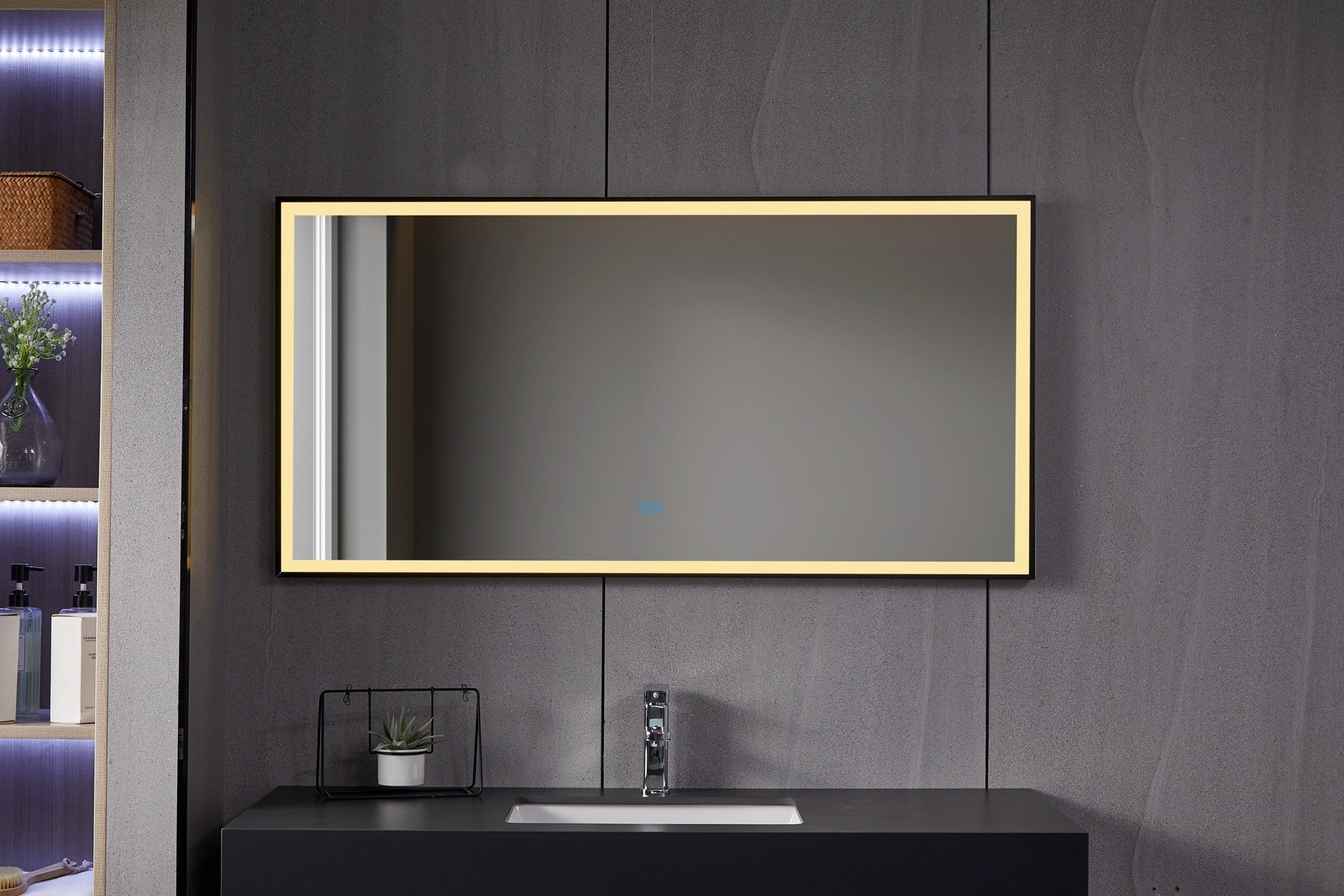 Vtw Living - Badkamerspiegel met Verwarming Zwarte Rand - 120 x 60 cm