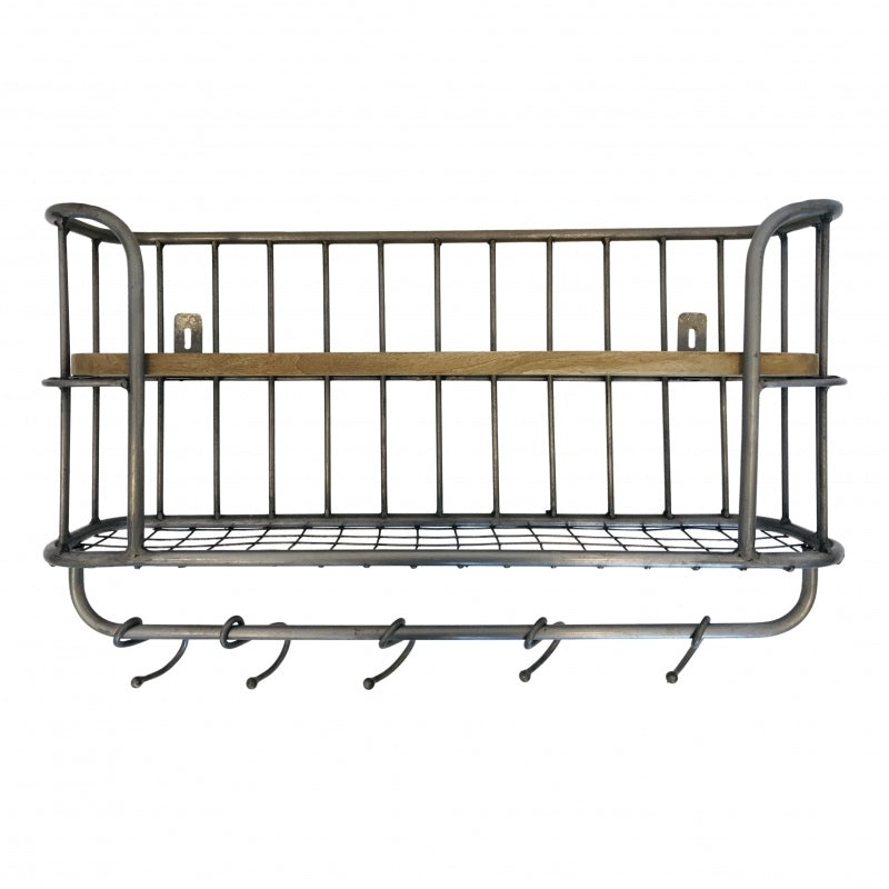Super leuk industrieel wandrek van metaal en hout. Aan het wandrek zitten haakjes. De haakjes kunnen fungeren als kapstok. Maak uw interieur compleet met dit leuke industriele wandrek. Gratis verzending!