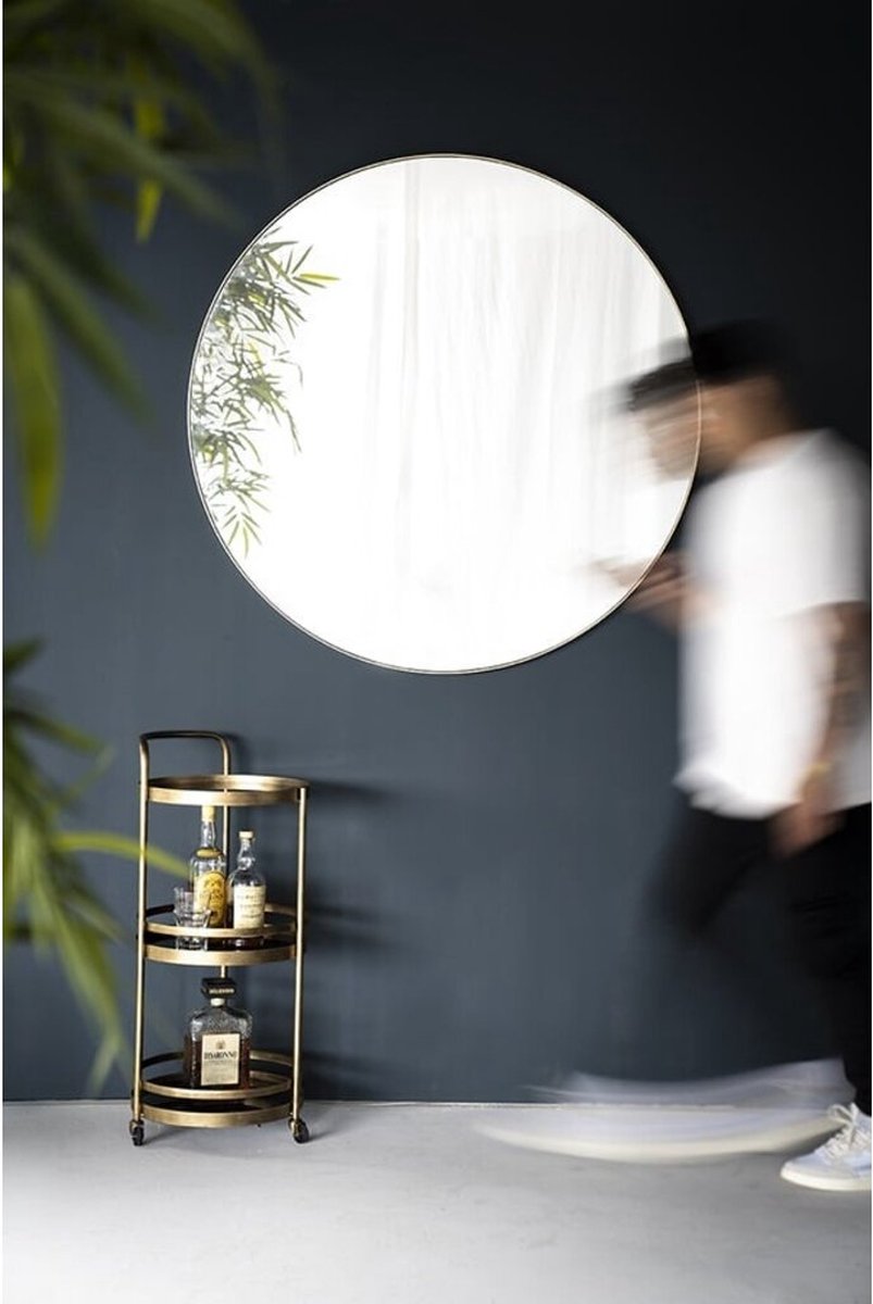 Ontdek onze ronde spiegel met een diameter van 120 cm. Deze spiegel is een prachtige aanvulling op elk interieur, met zijn strakke gouden rand die een stijlvol contrast biedt met het heldere glas. De spiegel is vervaardigd uit hoogwaardig metaal en glas, wat zorgt voor een duurzaam en kwalitatief hoogstaand product. Of je nu een ruimte groter wilt laten lijken, meer licht wilt creëren of gewoon een functioneel kunstwerk aan je muur wilt toevoegen, deze ronde spiegel is de perfecte keuze.