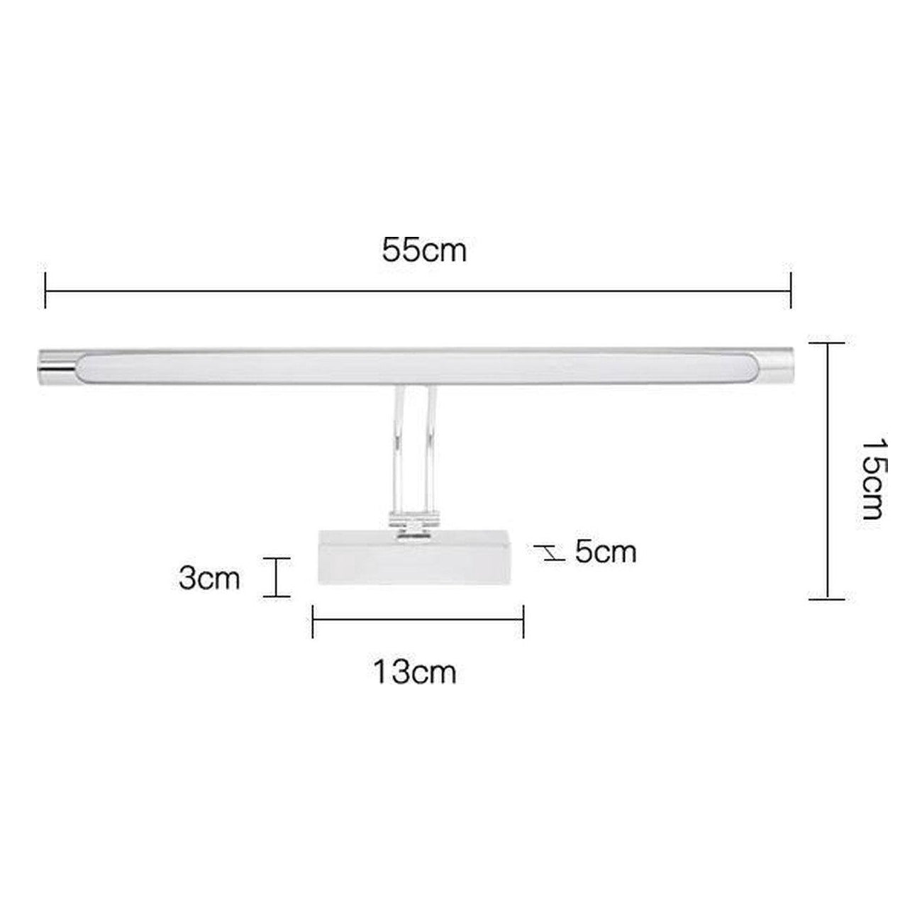 Maak uw badkamer compleet met deze moderne spiegel led verlichting. De ledlamp heeft een strak design en is waterdicht. De lamp is 55 cm breed, en geeft mooi warm en voldoende licht. De lamp kan naar wens gedraaid worden. Met deze ledlamp maakt u uw badkamer helemaal compleet! Ledlamp inbegrepen. Gratis verzending