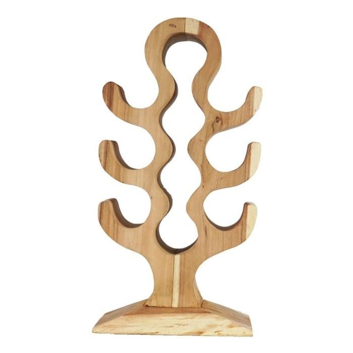 Dit unieke wijnrek met een organisch design is vervaardigd uit teakhout en suarhout, en combineert natuurlijke vormen met functionele elegantie. De warme bruine houttinten en vloeiende lijnen maken dit rek tot een opvallend en stijlvol meubelstuk dat je wijncollectie op bijzondere wijze presenteert.