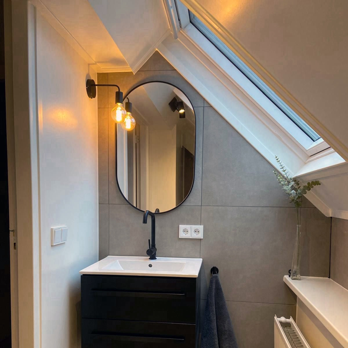 Breng een vleugje elegantie en stijl in je interieur met deze ovale wandspiegel van Vtw Living. Deze spiegel, met een afmeting van 50 x 80 cm en een diepte van 1,5 cm, heeft een moderne uitstraling dankzij de slanke zwarte metalen rand. Het strakke en minimalistische ontwerp past moeiteloos in diverse interieurstijlen, van modern tot industrieel. Deze wandspiegel is perfect voor gebruik in de hal, slaapkamer of woonkamer, waar hij zowel functioneel als decoratief kan dienen. Een tijdloos stuk dat licht en ruimte toevoegt aan elke kamer.