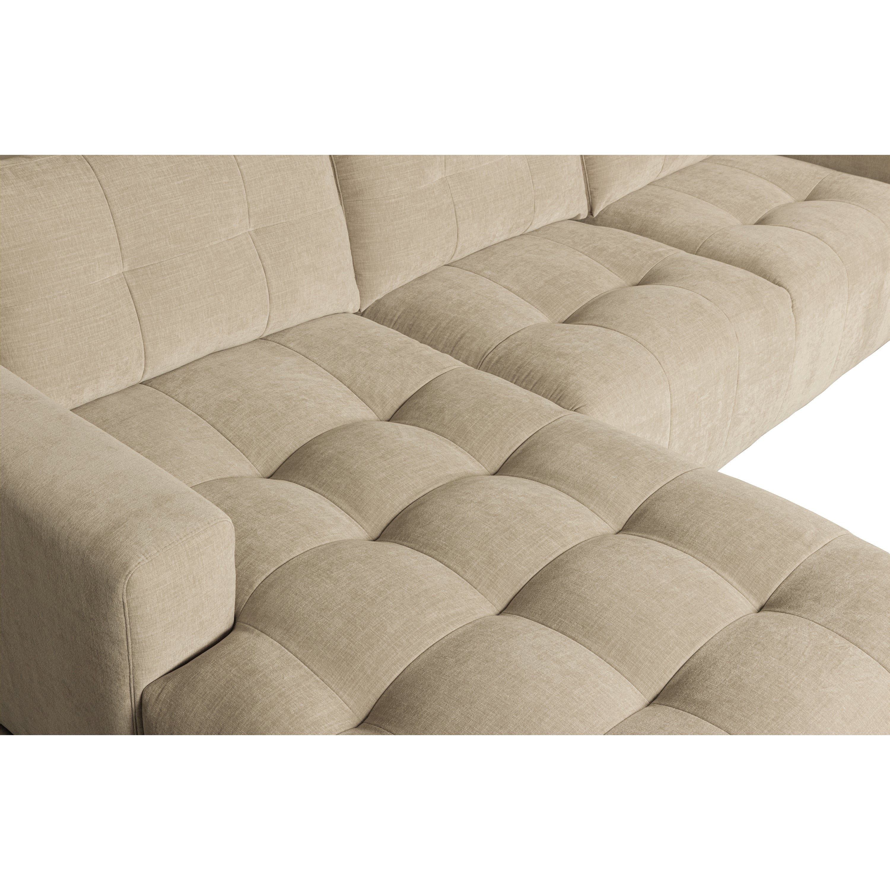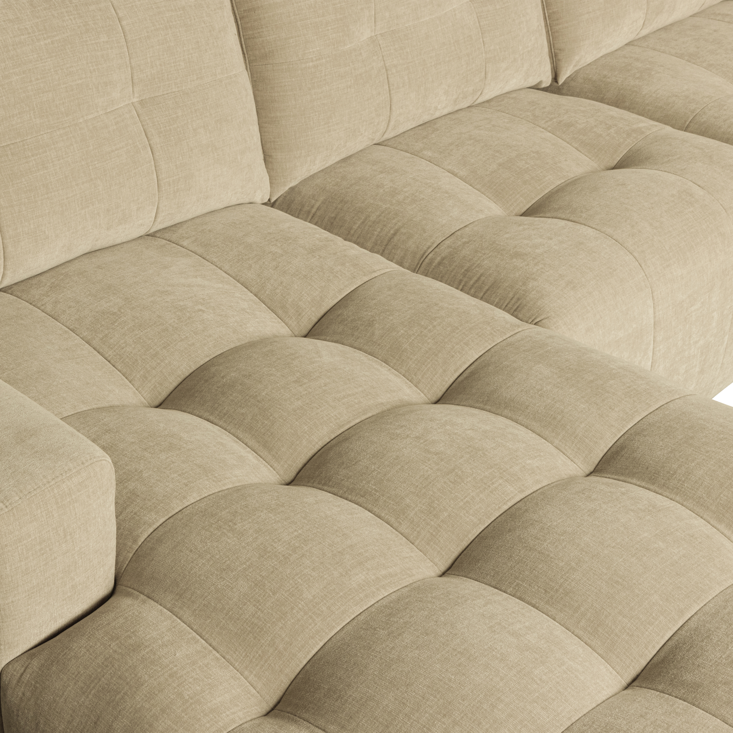 De Bar chaise longue wordt geleverd in twee delen die gemakkelijk te verbinden zijn door middel van beugels. Beide delen zijn aan alle zijden gestoffeerd. Plaats viltglijders onder de poten om harde vloeren te beschermen.