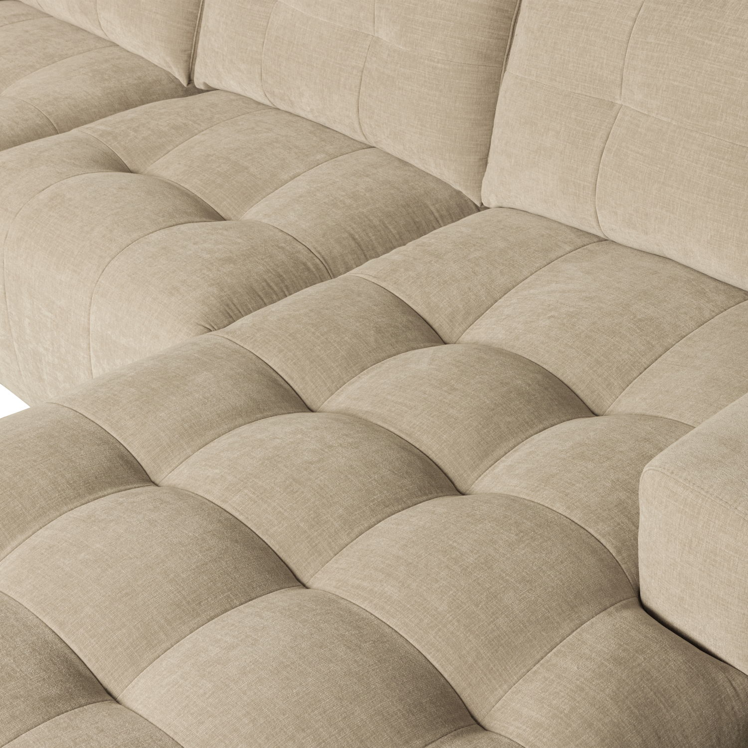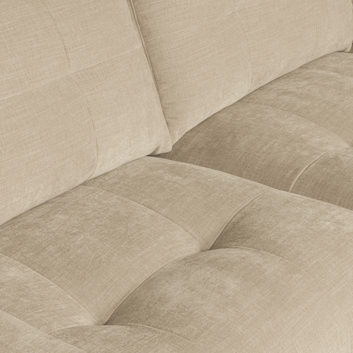 De Bar chaise longue wordt geleverd in twee delen die gemakkelijk te verbinden zijn door middel van beugels. Beide delen zijn aan alle zijden gestoffeerd. Plaats viltglijders onder de poten om harde vloeren te beschermen.