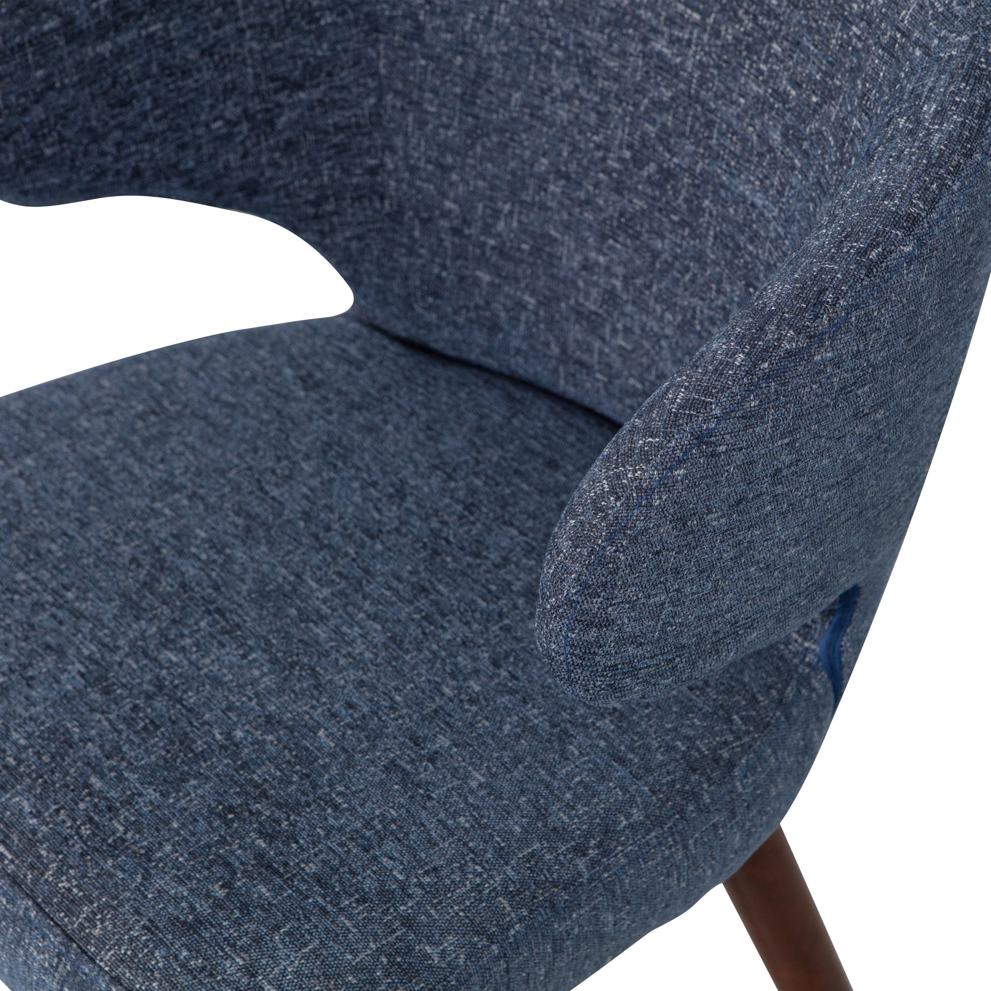 De poten zijn gemaakt van hout met een donkerbruine finish en afgeronde onderzijden. De zitting is opgebouwd uit een houten frame met een standaard foam vulling van 7 cm dik. De zitting is bekleed met een eenvoudig te onderhouden, gemêleerde stof van 100% polyester. Onderhoud