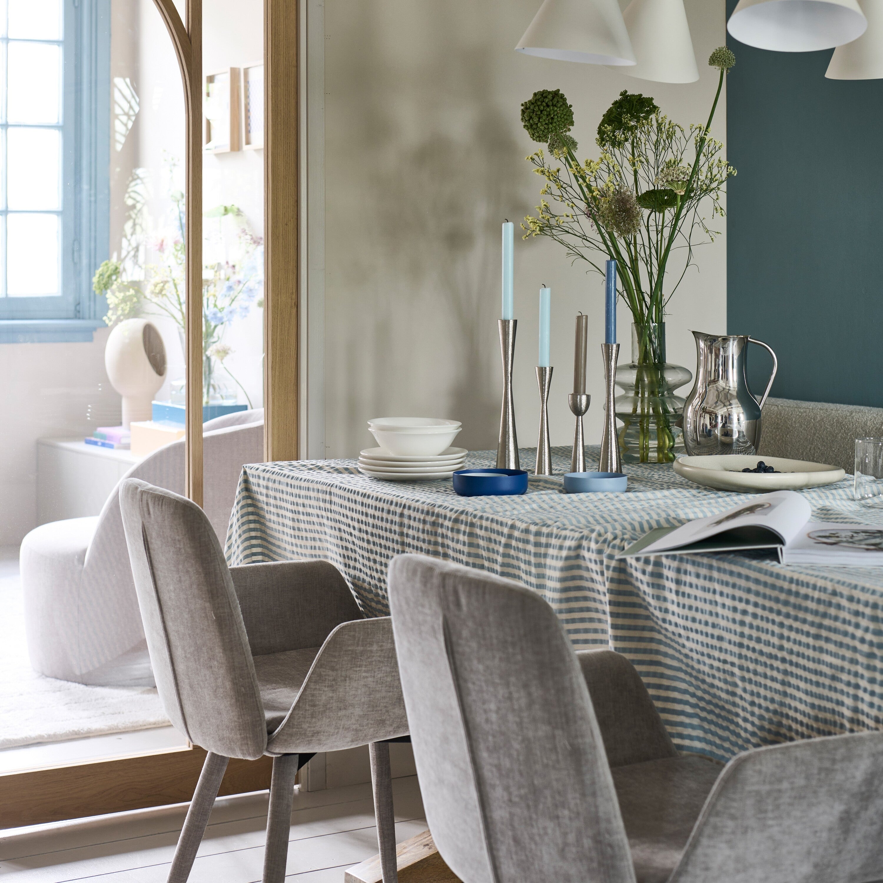 Materiaal: Onze fijn geweven stof Cups voelt zacht aan en heeft een volle grip. De stof is opvallend door de subtiele kleurnuances. Cups is gemaakt van 100% polyester en heeft een zichtbaar weefpatroon. De geweven stof is geschikt voor intensief gebruik met een Martindale 88.000.